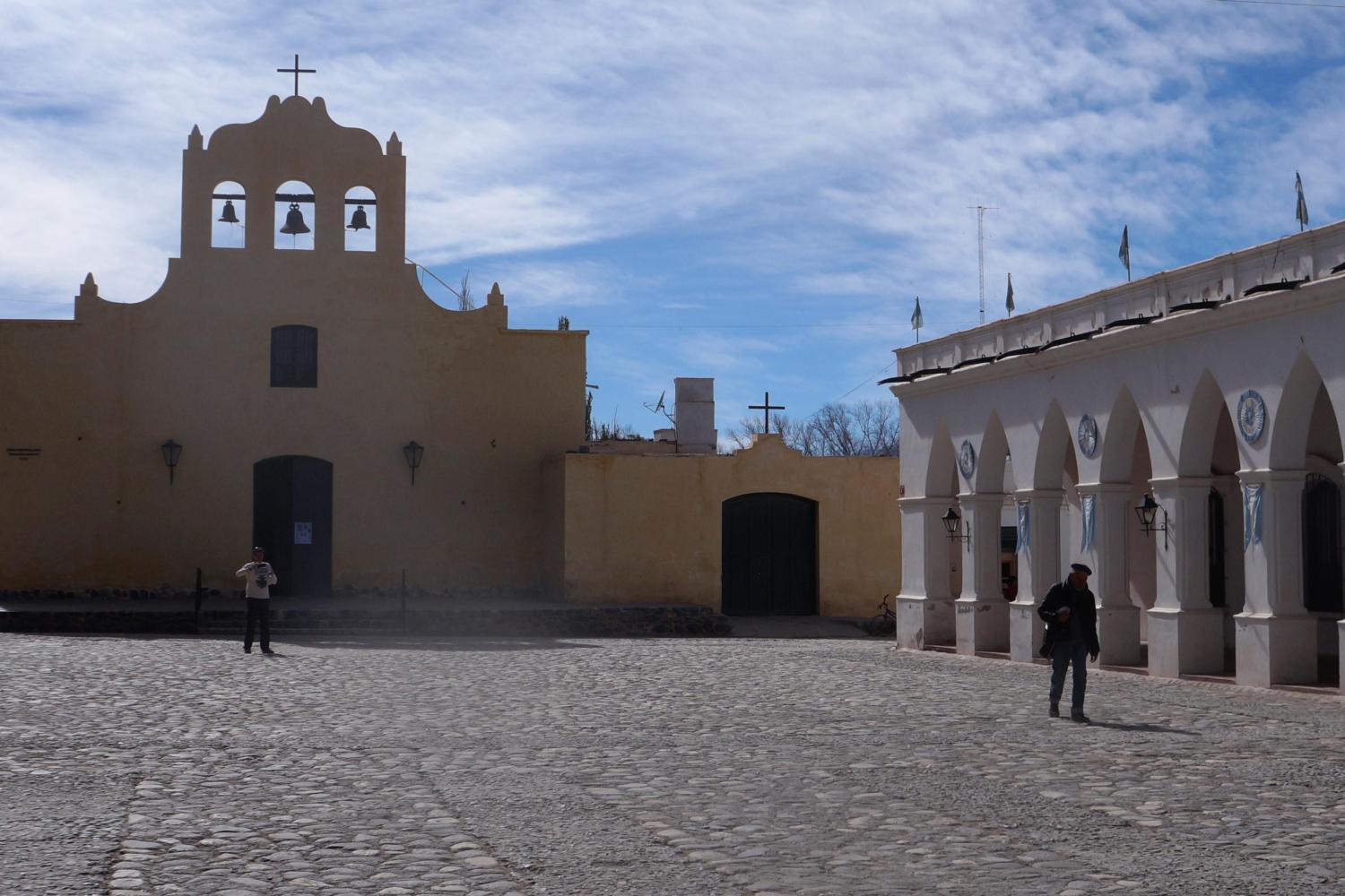 I didn't have spares, but there's still a small bit of wear left in the pads. All I have to do is tighten up the brake-calibers so the pads reach the rim. To do this I unload the bike and set up workshop in the village plaza. I get a few spectators while anxiously working with allen key, hoping what brake wear I have will get me back to Salta, minding there's a long descent on the way. I get asked all the usual questions, where and when I began cycling. Where I'm cycling next of a big man. Then his wife come along and asks me the same questions, again.