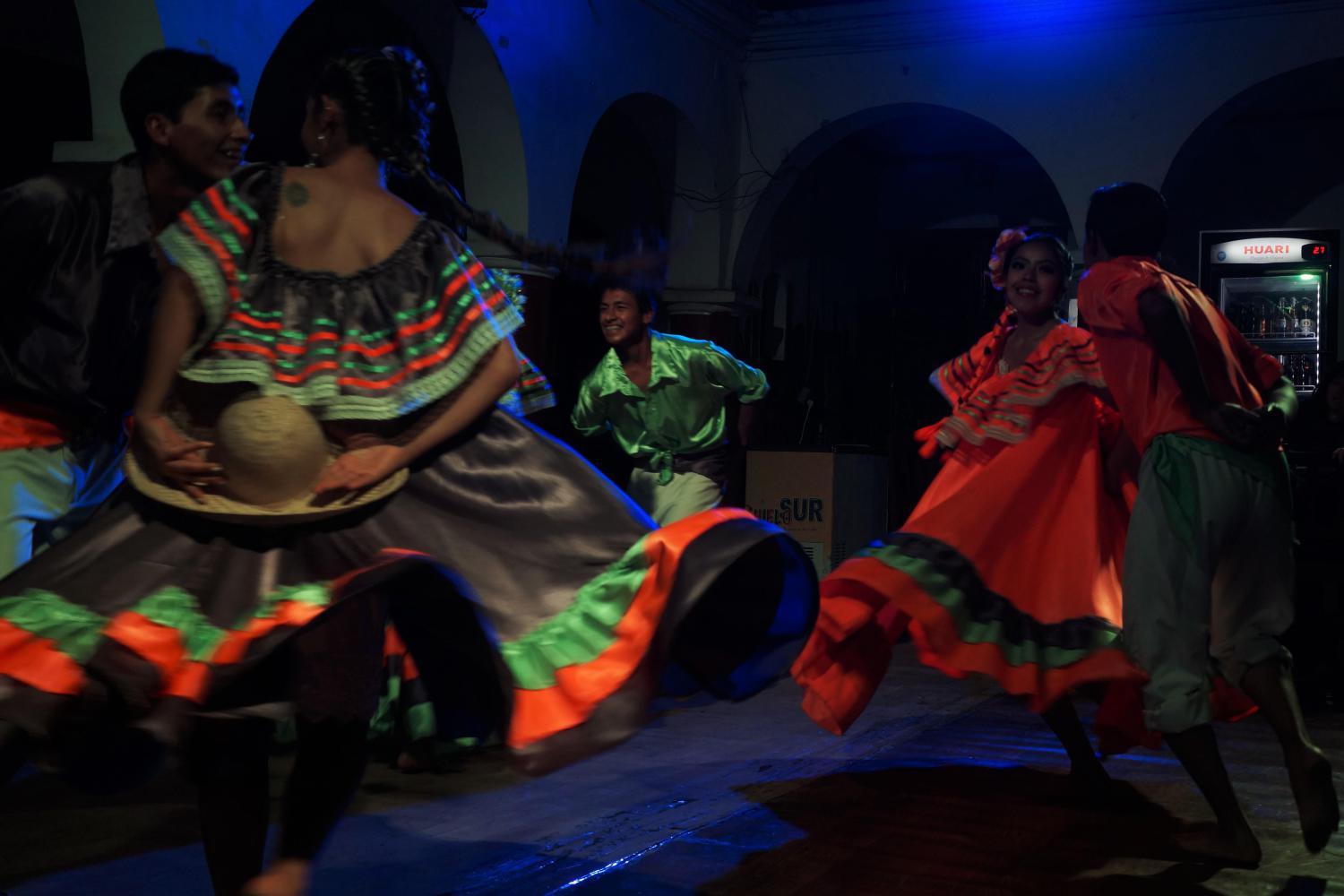 Anyway, there was a barbeque buffet, Tuesday. Free salsa Dancing lesson, Wednesday. Italian food, Thursday. And tonight, Bolivian culture with traditional Bolivian folk dancing performed by young people from a local dance school.