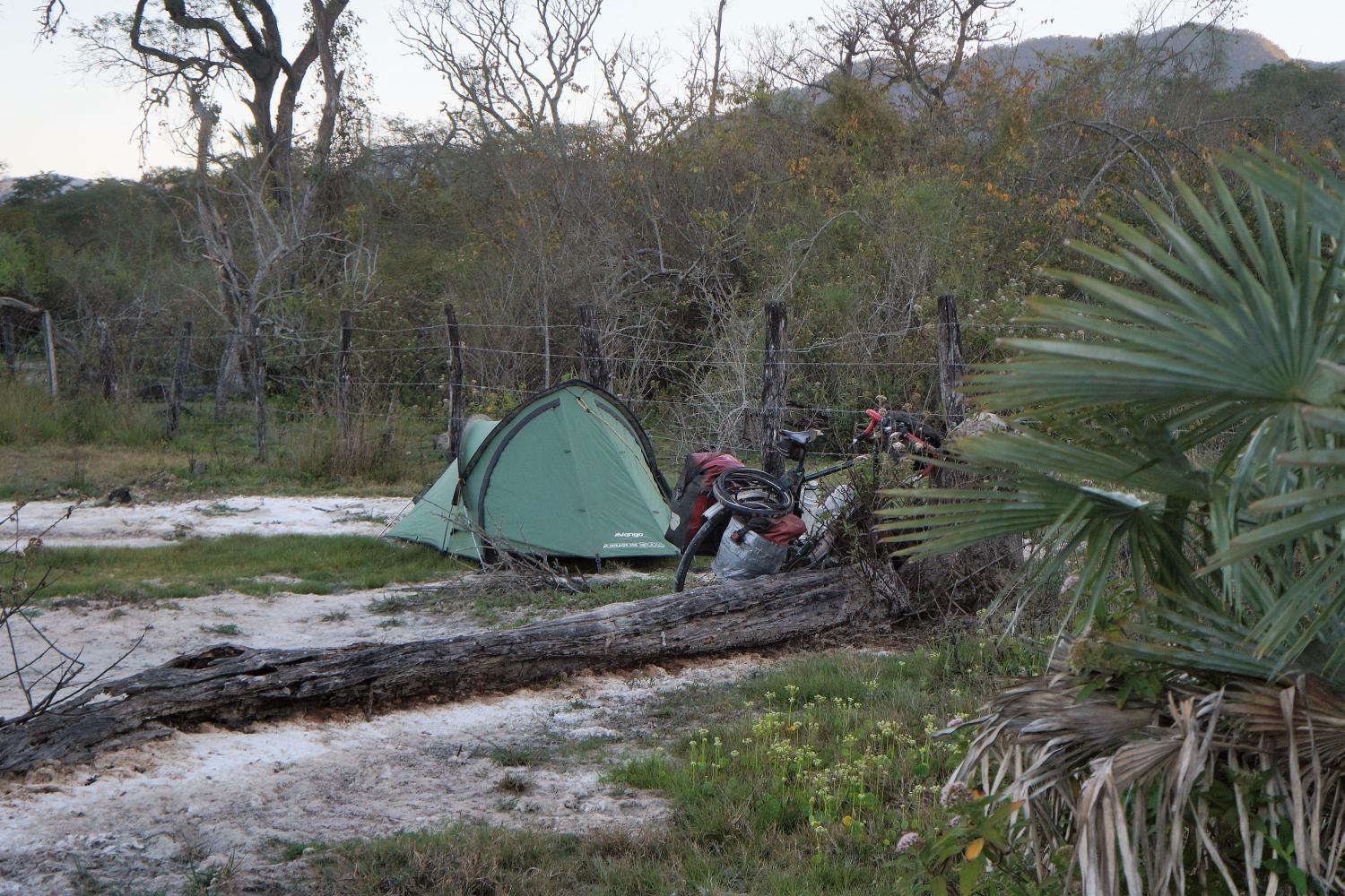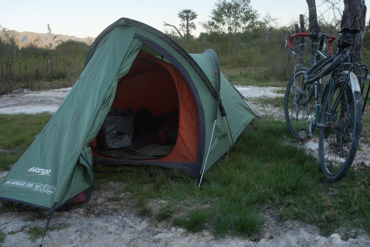 I'm awake and up for quarter to seven. A dull overcast morning. Large very territorial birds make a great squawking sound outside, one diving down attacking my tent. Though after five minutes they fly off.