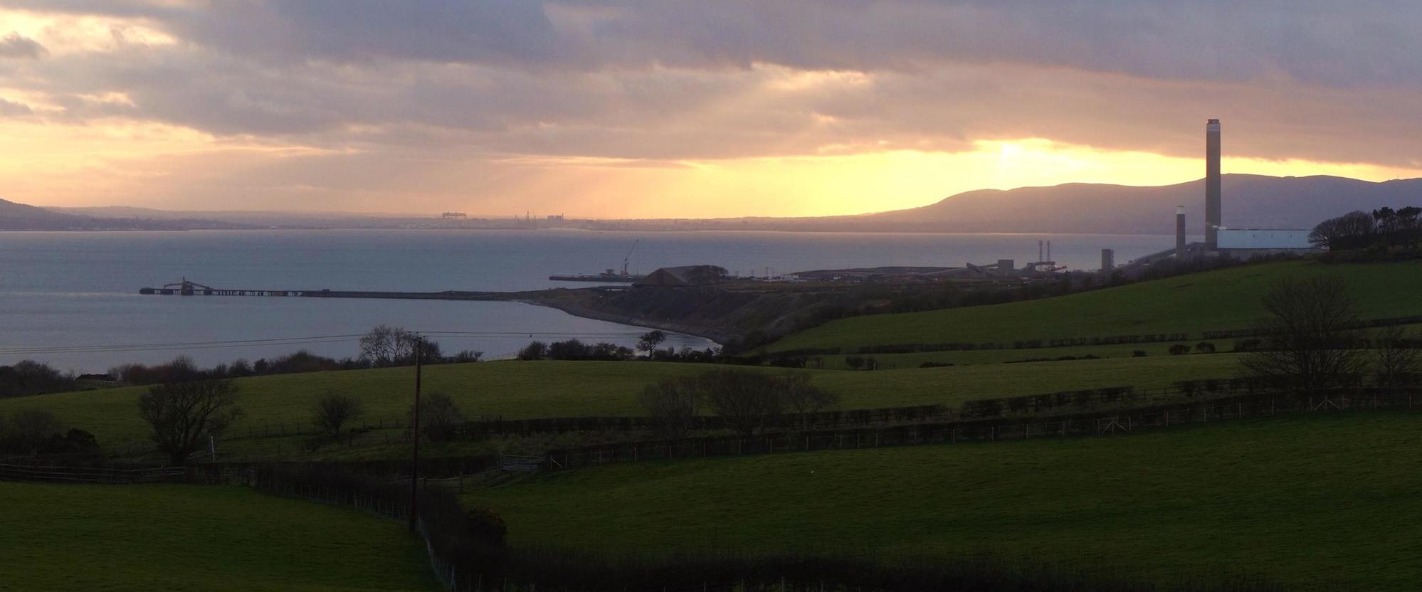 I continue out of the city on the A2, named the "Shore Road" as Belfast Lough is on the right, until dusk when I'm a few mile short of Larne, whereupon I turn off on a byroad hoping to reach a wooded hillside on the left-hand side and a possibility of camping.