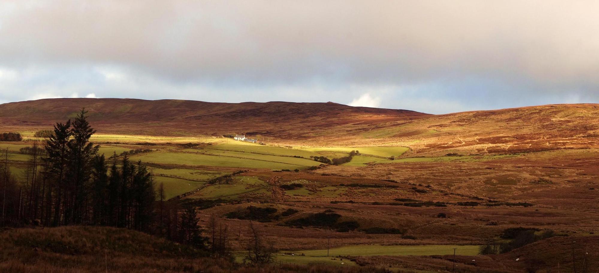 The weather remains cold; nightly frosts and sunny days. In the hostel in Ballycastle I picked up a tourist pamphlet titled "Cycling In The Mournes" It had a number of routes of various degrees of difficulty, circuits of about forty kilometres. Although familiar roads to me, I thought it would be good to try one out. Starting north of Newcastle it climbs steadily up the river valley. The short description says: a loop taking in forests, villages and a nineteenth century man-made lake. Then goes on to describe the road and where to turn etcetera.