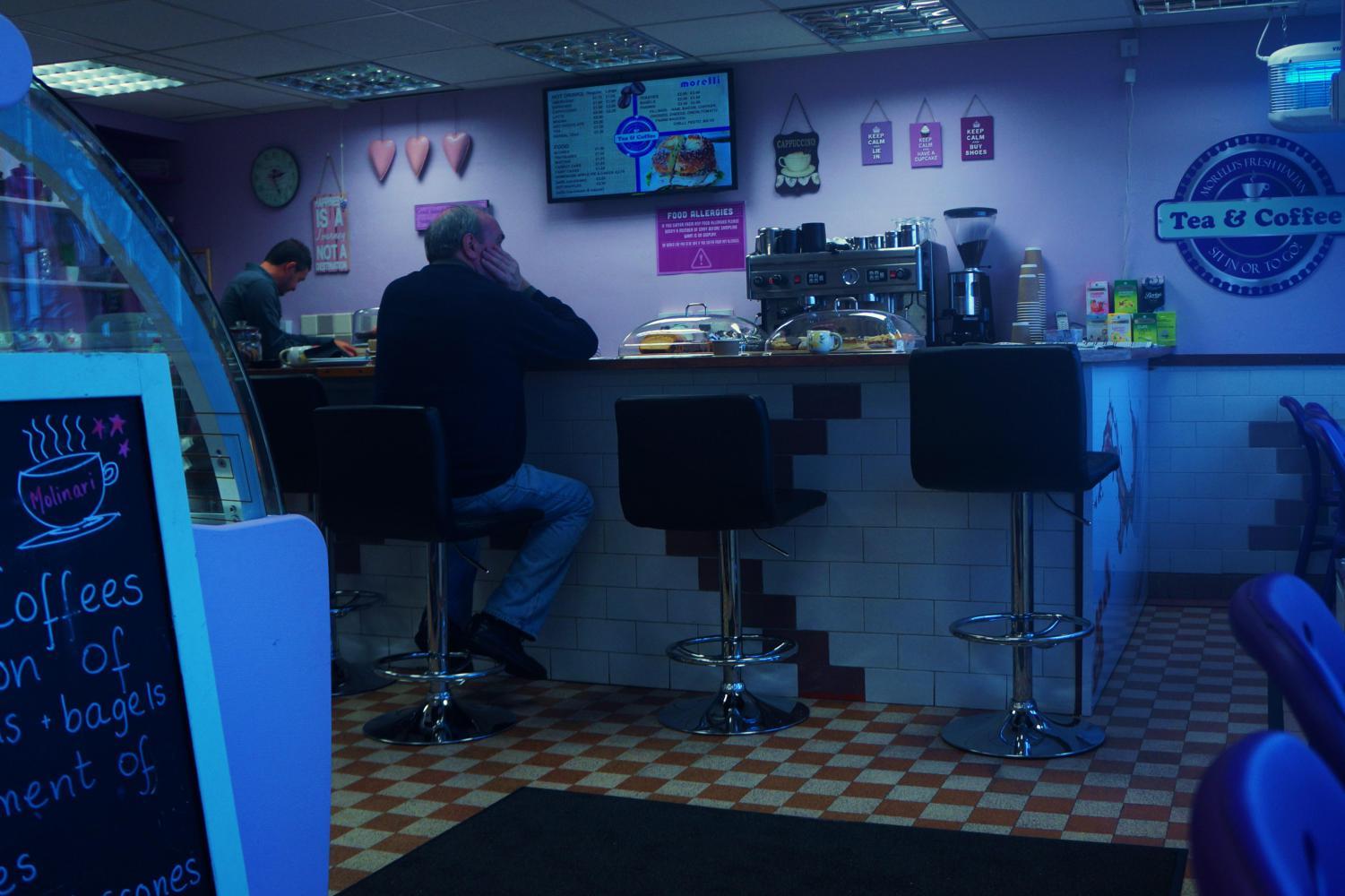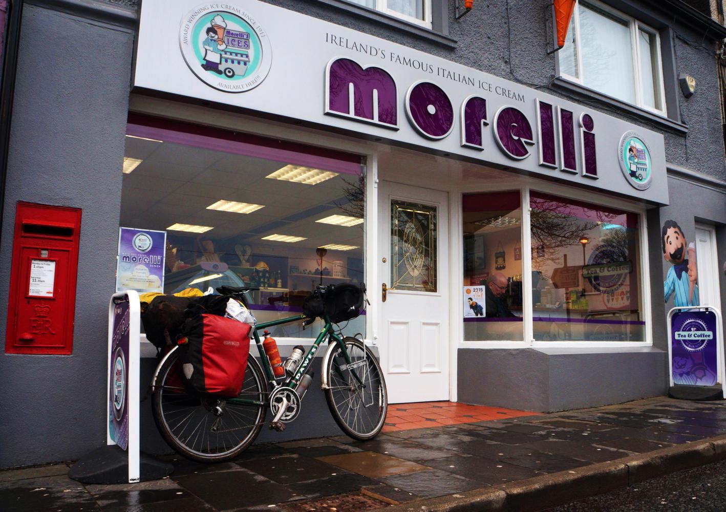 I pull up outside an ice-cream parlour and enter, order a cappuccino and take a seat. Then sit long pondering whether to ride any further today. There's a backpackers a few doors along and staying there a night would be preferable instead of a repeat of yesterday, when I ended up riding in the dark. The cappuccino is strong and it is cosy looking out at the cold of the seafront as a string of early eighties hits ooze from a speaker including "I'm only human" by Human League. I am. I get up and order a second cappuccino. Then sit. Queen's "Radio Gaga" is playing: a soundtrack to me getting on a bus to my very first job. Later when I get up and pay, a woman sat by the counter chatting to the barista woman, swivels in the stool to face me and passing the day comments on what a cold day it is for the bike, and inquires how far I've come. I say and add that I camped last night; at which she winces and shivers in a gesture of sympathy. I mention staying in the backpackers tonight, and she counters that its doubtful whether it is open, but recommends a hostel in The Quays.