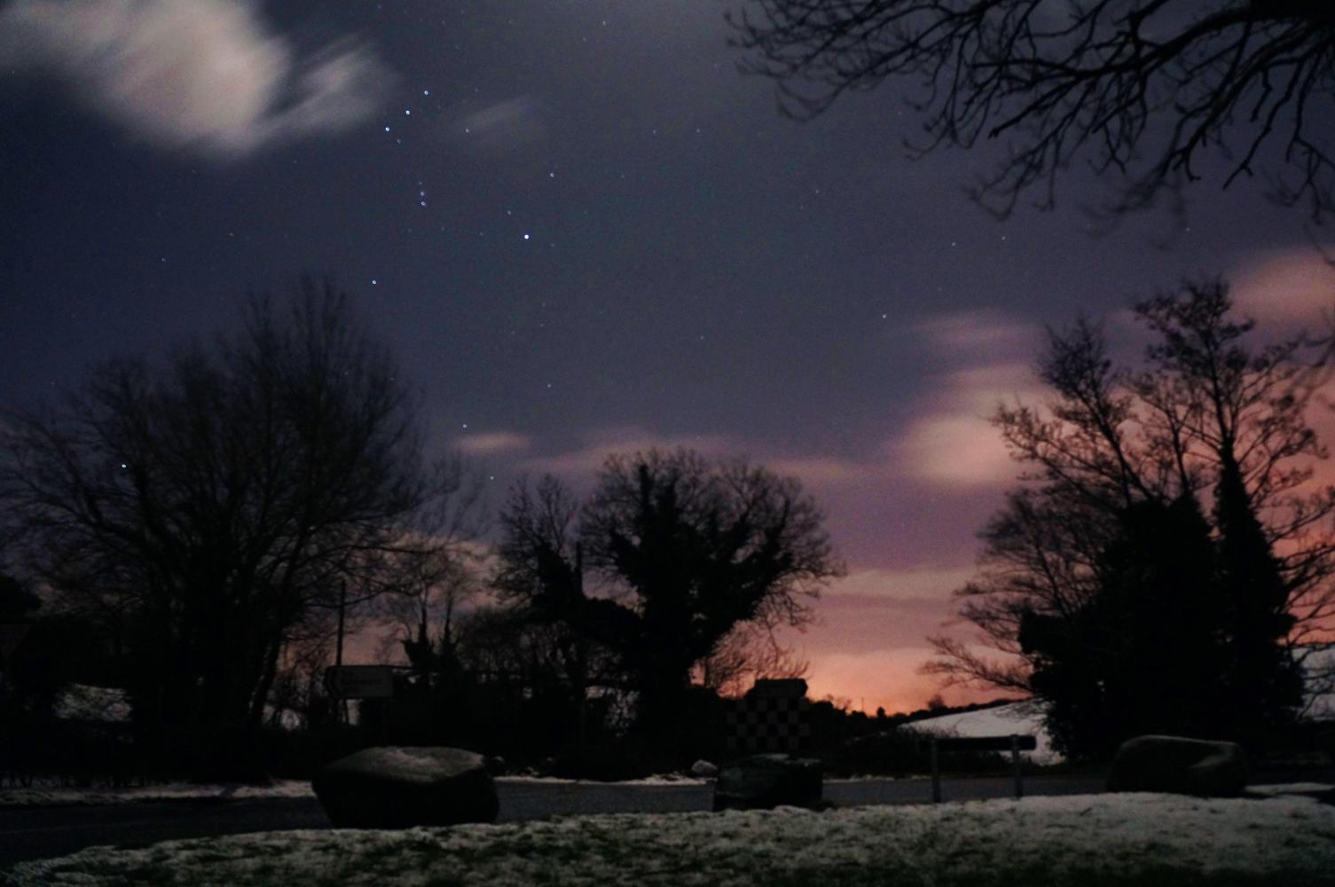 There is less snow on reaching Ballynahinch and the sky has cleared, so I enjoy the remainder of the ride in moonlight.