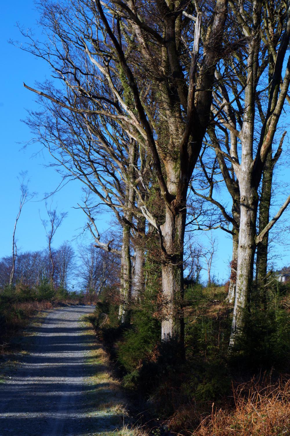 After Cushendall the A2 continues a little inland and then a B-road splits off on the right, toward the coast: the way I took last June, it passes through the pretty coastal village of Cushendun, then there's quite a formidable steep climb for a mile or so before an equally steep descend down to Tors head with an old derilick weather station and a fabulous view across to the Scottish coast. Today it being cold I decide on the more direct route which is equally scenic, going up over a moor and then with pine plantation on either side called Patrick forest park.