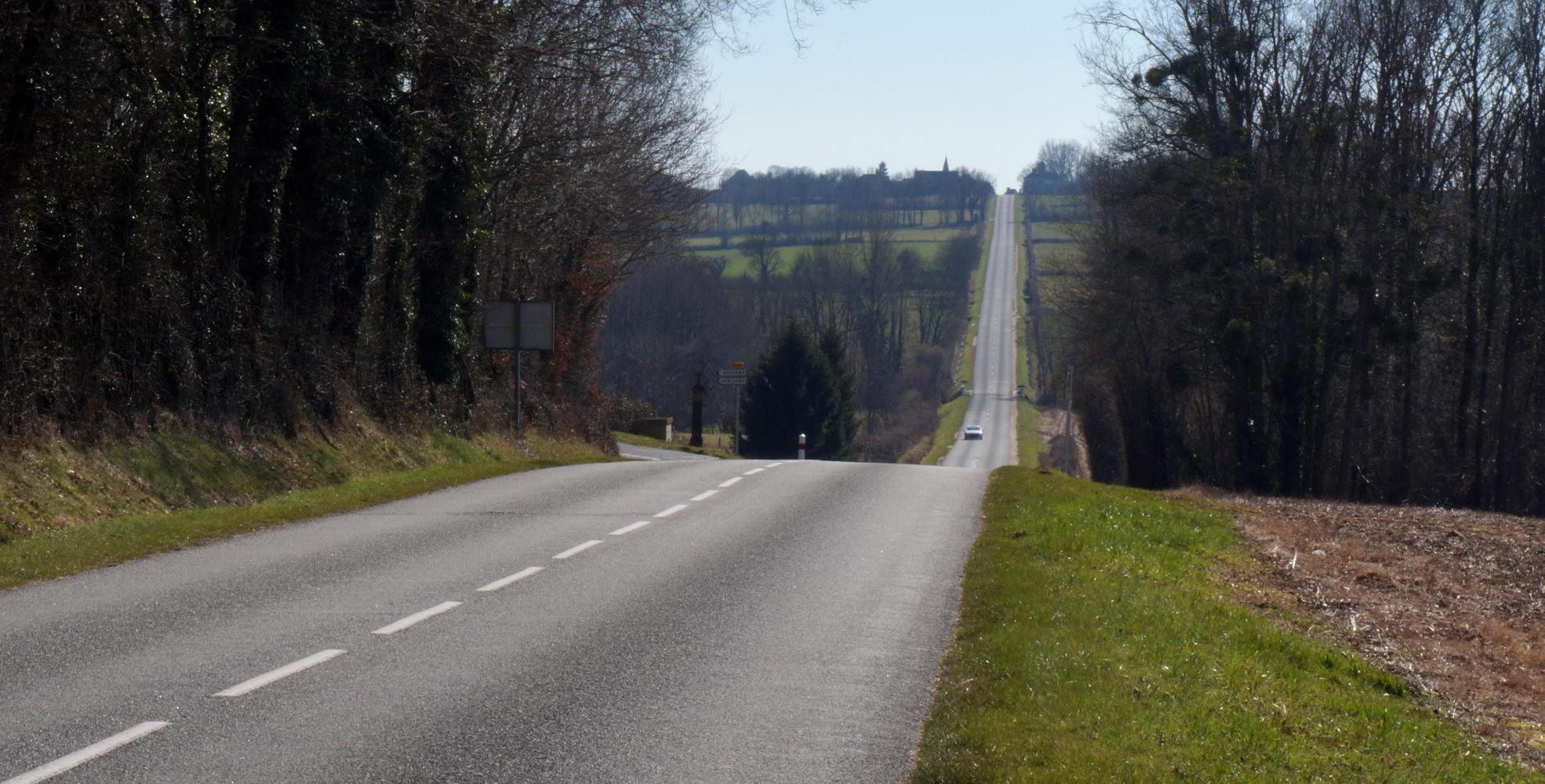 The countryside onward is again flat, but the road is enclosed either side by low sapling woodland with marshy undergrowth and ponds in places.
