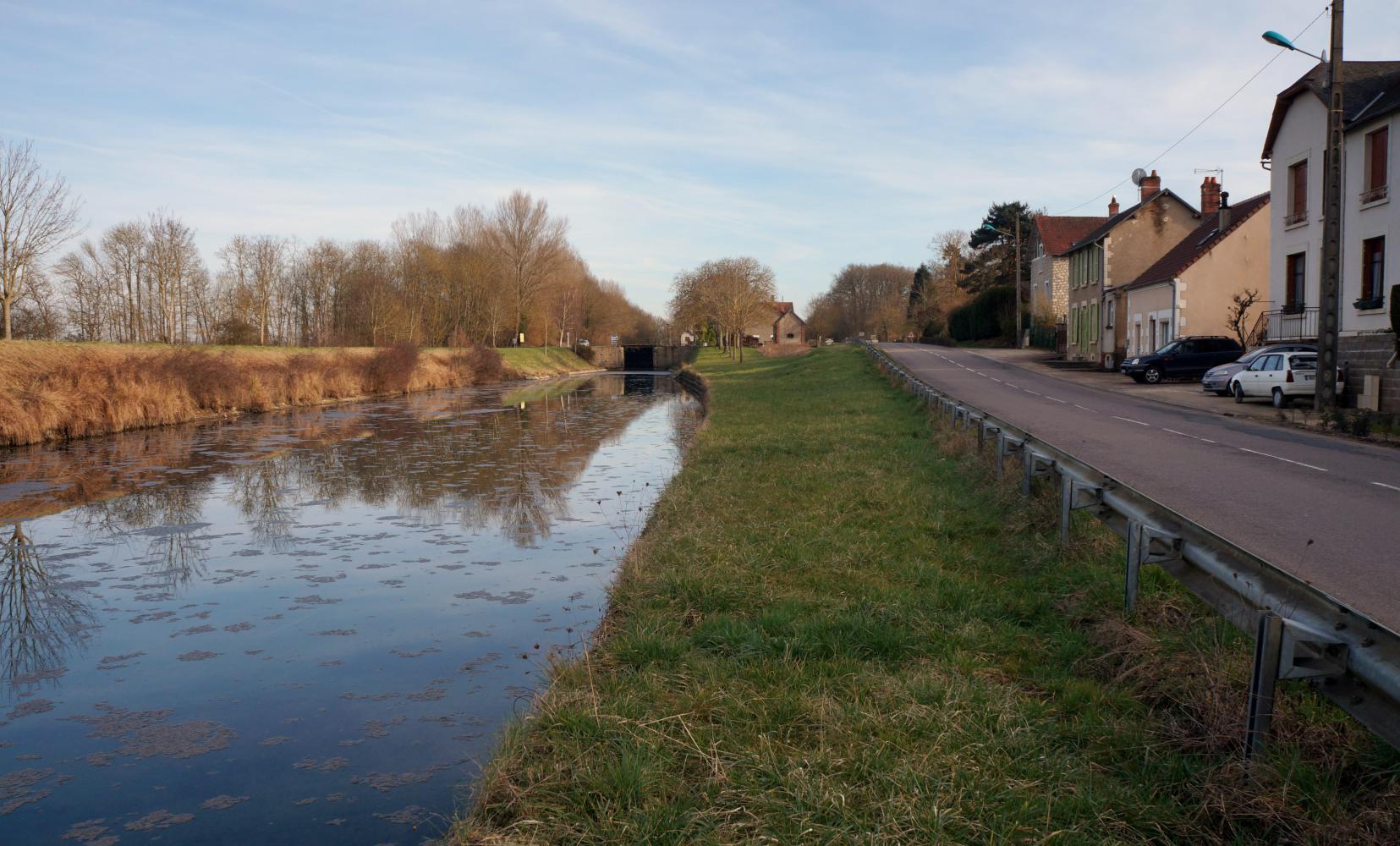 I descend again. Down a switch-back descend until I reach the road south along the Loire canal. I cross the Loire again at Pouilly, a place I hoped to be passing a supermarket, but don't see any. I continue on D38 away from the Loire and pass through a handful of villages coming up on dusk; small places without a supermarket, so I've to make do with pasta with broccoli for dinner.