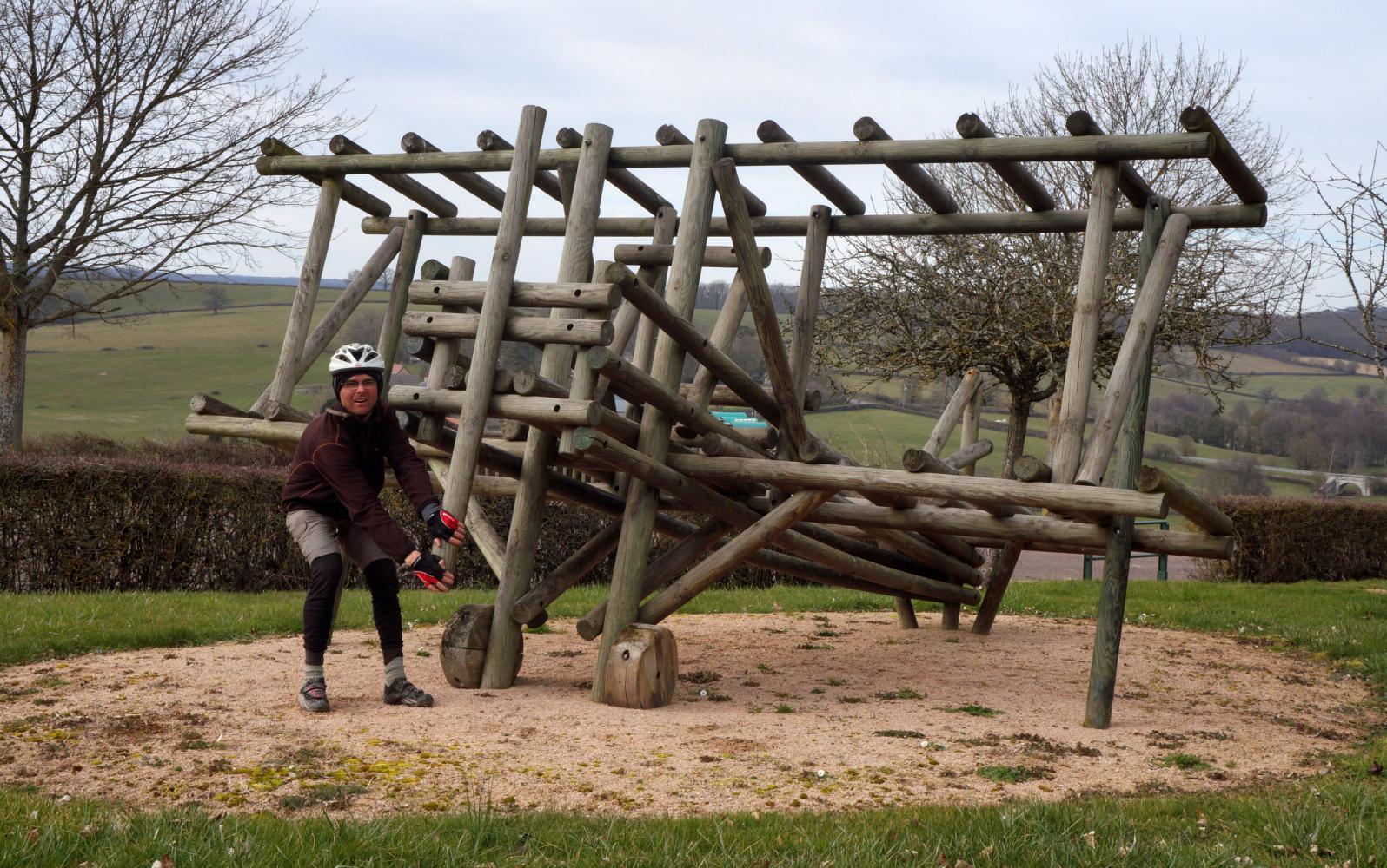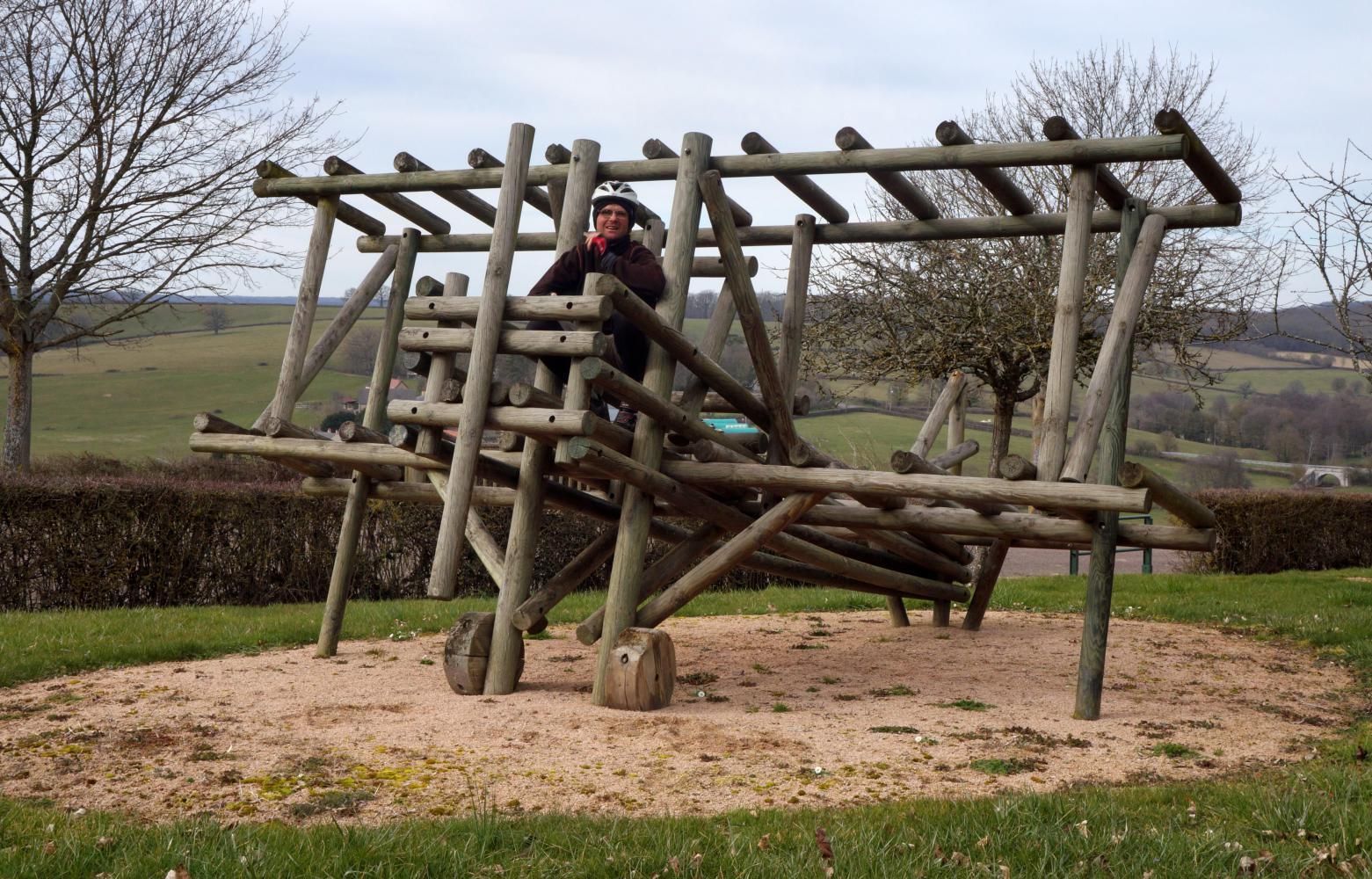 I didn't have anything to drink at lunch and I've drank all my water, so it's a long thirsty ride to the next town, La Ferte Saint Aubin, with chateau and gardens on the way in, typical French main street and hypermarket on the way out, wherein I stock up on water and beverages. A couple of kilometres out of town there's a rest-place in a clearing by a lake where I stop and take a seat at a picnic table. I crack open a beer. It is such a pleasure to sip in the late afternoon sunshine. It is warm and the air still. The trees cast shadows and the gaggle and laughter of kids on the slides nearby is pleasing.