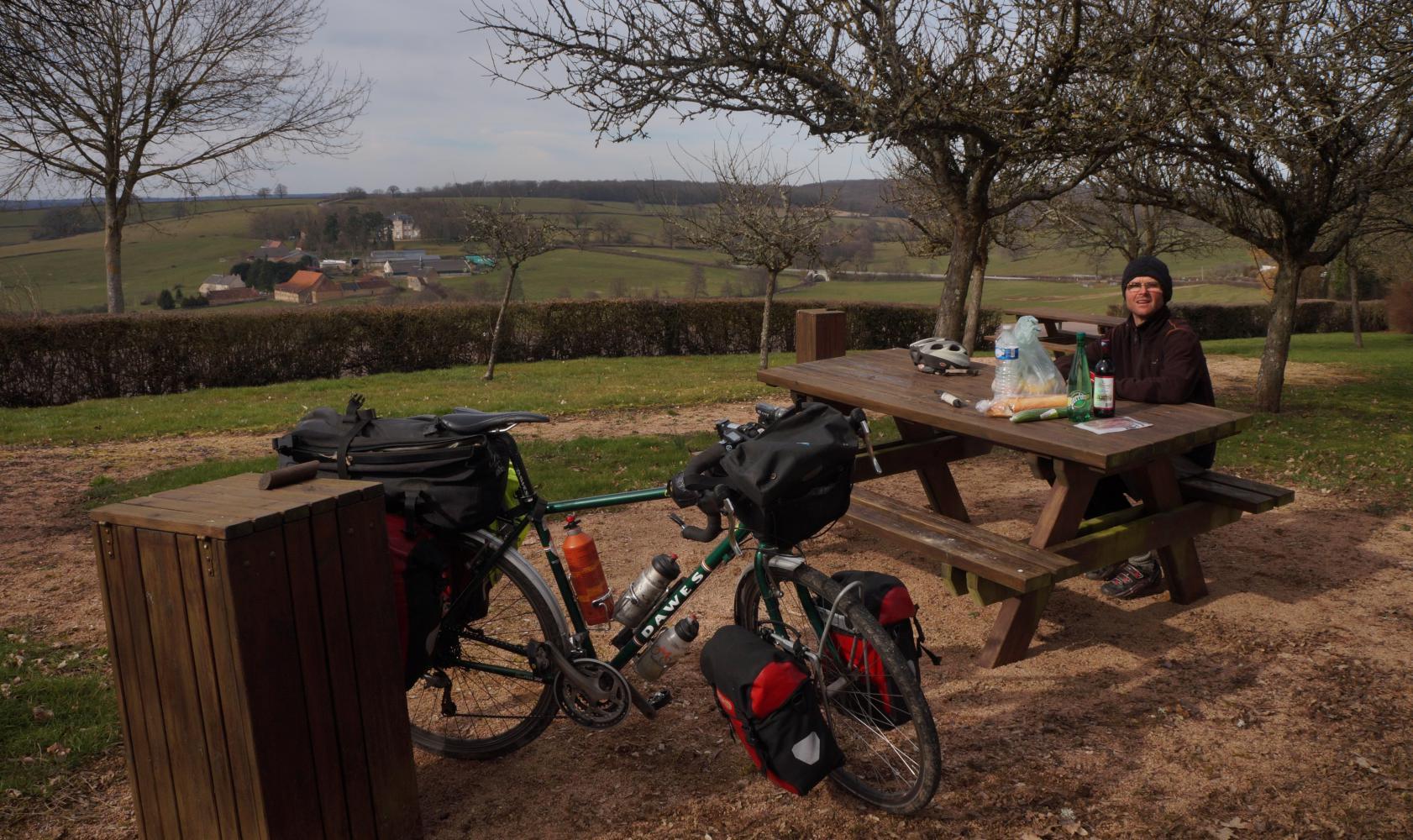 There's a Carrefour hypermarket by the roundabout on the way into Premery, the first town I reach this morning. Here I make sure to stock up as tomorrow is Sunday. The Carrefours, SuperUs sell everything including petrol. It is a wonder anyone else can survive, but they do, as I pass the more traditional petrol station in town with car repair garage. Riding around town there's a fruit and veg street market, but no cafes as I'm looking forward to morning coffee. Not until I ride along the street onward do I come to a bar: a very tradition place with Buckler and Kronenberg beer. And although an hour before noon, the man at the bar is on his second glass. And round a table by the wall four elderly men are on spirits. There isn't much elbow room in this café and there are only two other tables one of which children are playing at and the other is barely spare as it contains Kronenberg man's baguage, though when I sit down, he swiftly reaches round, says "pardon!" and takes it away. I drink my coffee quickly and leave.