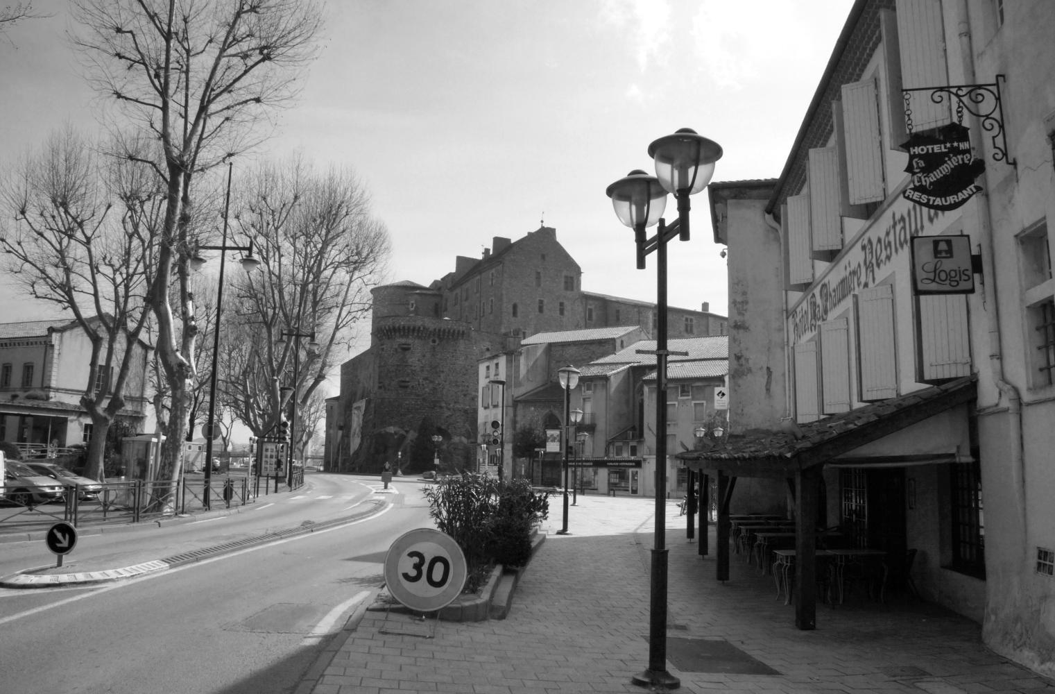 In Boung Saint Andeol, it is after midday when I stop to stock up on food for the day on the way into town, then ride into town for coffee.