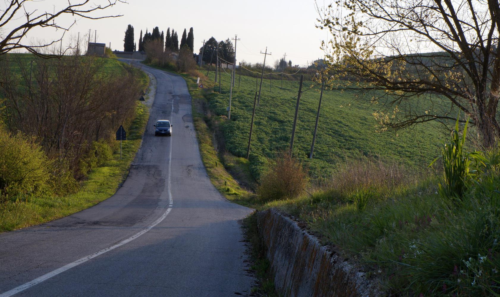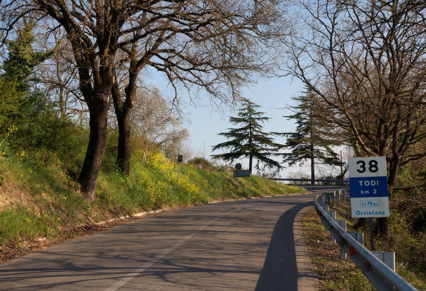 My road is south west toward Orvieto. Nine kilometres from the town, there's a junction, a road coming up at an acute angle on the left, signposted Todi. I pause looking at the map, considering what way is best. Then decide left and so change direction, south east, descending more into a deep hollow with no way out but up.