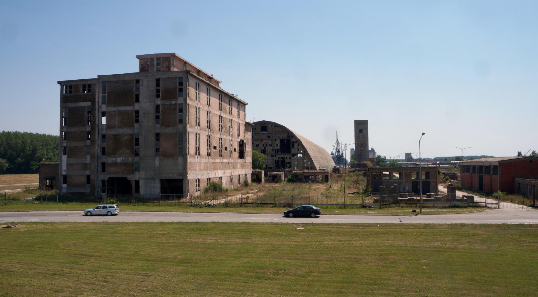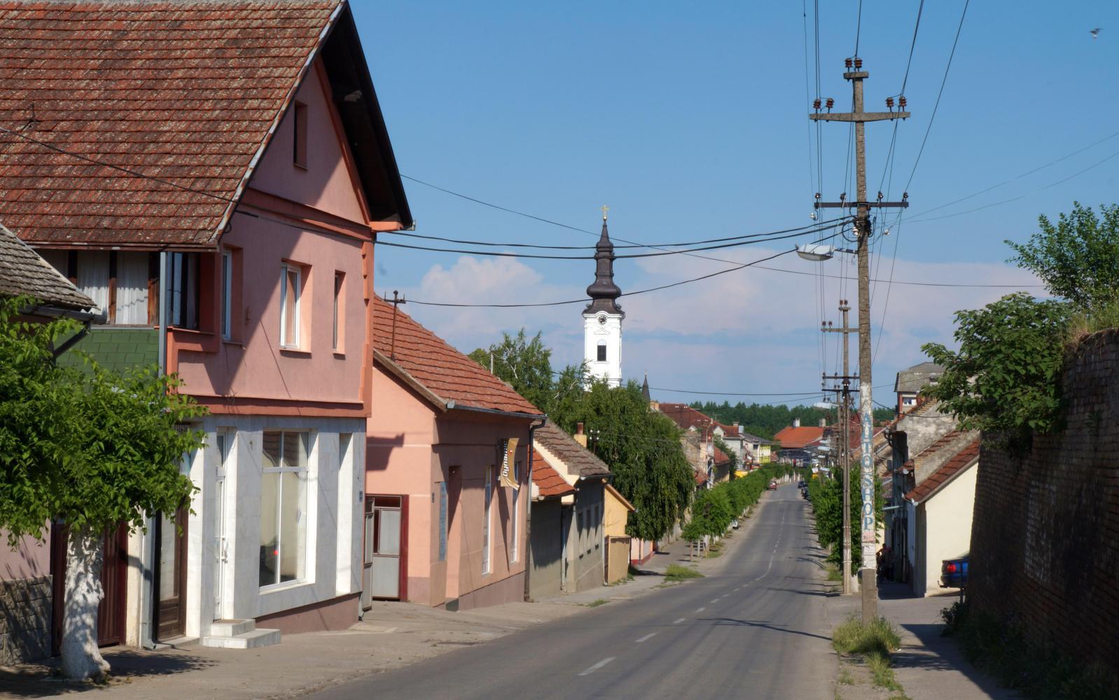 The riverside bike path come to a dead end beyond huge scaffolding for a concrete bridge-arch, part of a new bridge project. The only way then is a turn away from the river, which although with a sign for the motorway, is along empty street through industrial park, turning right then left, eventually out upon a dual-carriageway with a sign for Belgrade and Zrenjanin. Having checked the map, this is the road I want until a right turn off at Kac.