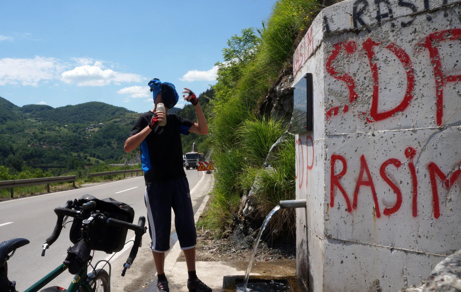 And at the roadside are water-founts every few kilometres, pipes sticking out above stone troughs with crystal clear cold water flowing out where I can replenish drinking water.