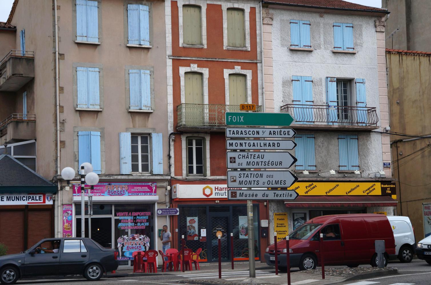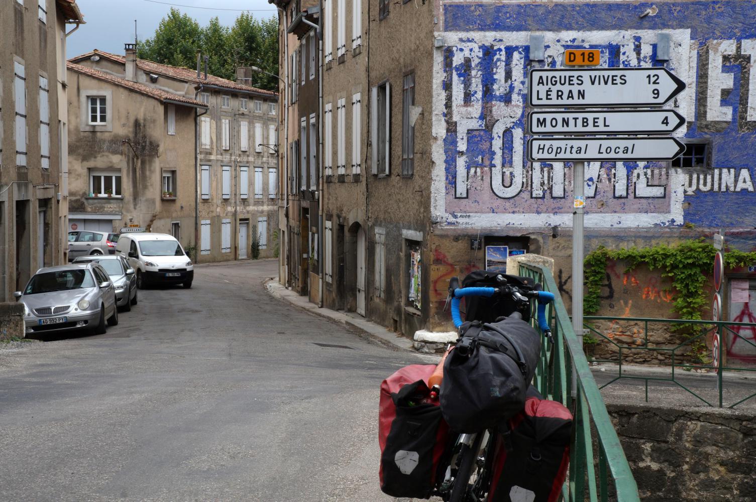 There's ten kilometres more to Tarrason, a town where autoroute and other major roads converge. I follow signs for D618, or "Le Col du Portet" and shortly see a SuperU supermarket on the left just as there are spots of rain.
