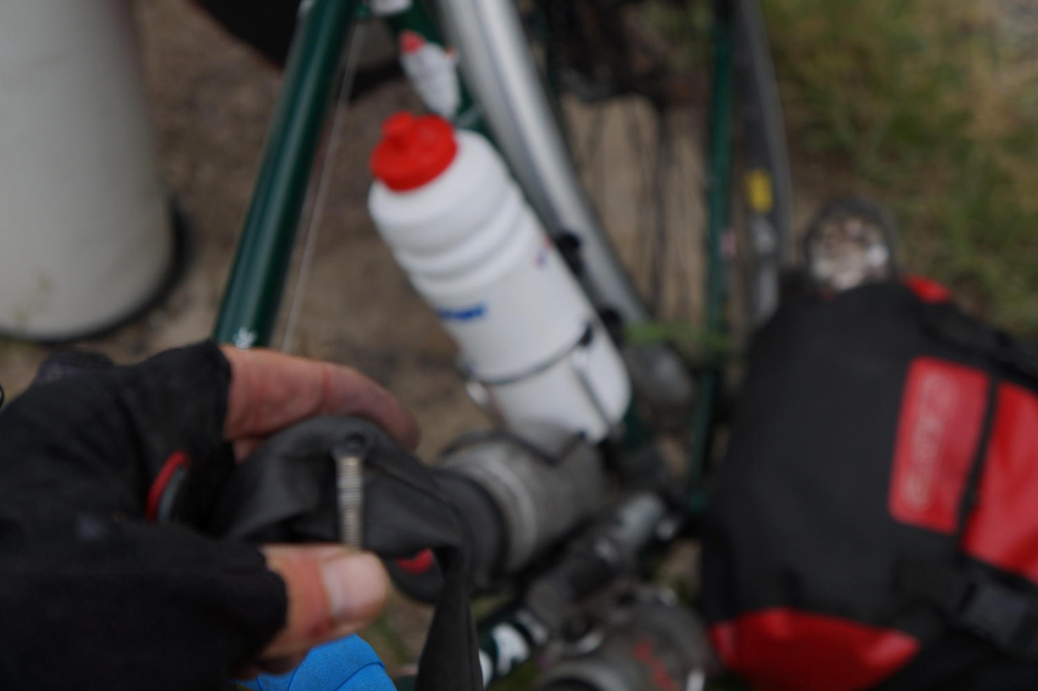 It doesn't feel too bad once I get going again. The descent is steep so I'm constantly touching the brakes causing a lot of wear in the splash on wet road. But it's warmer on the bike than back in that shelter.