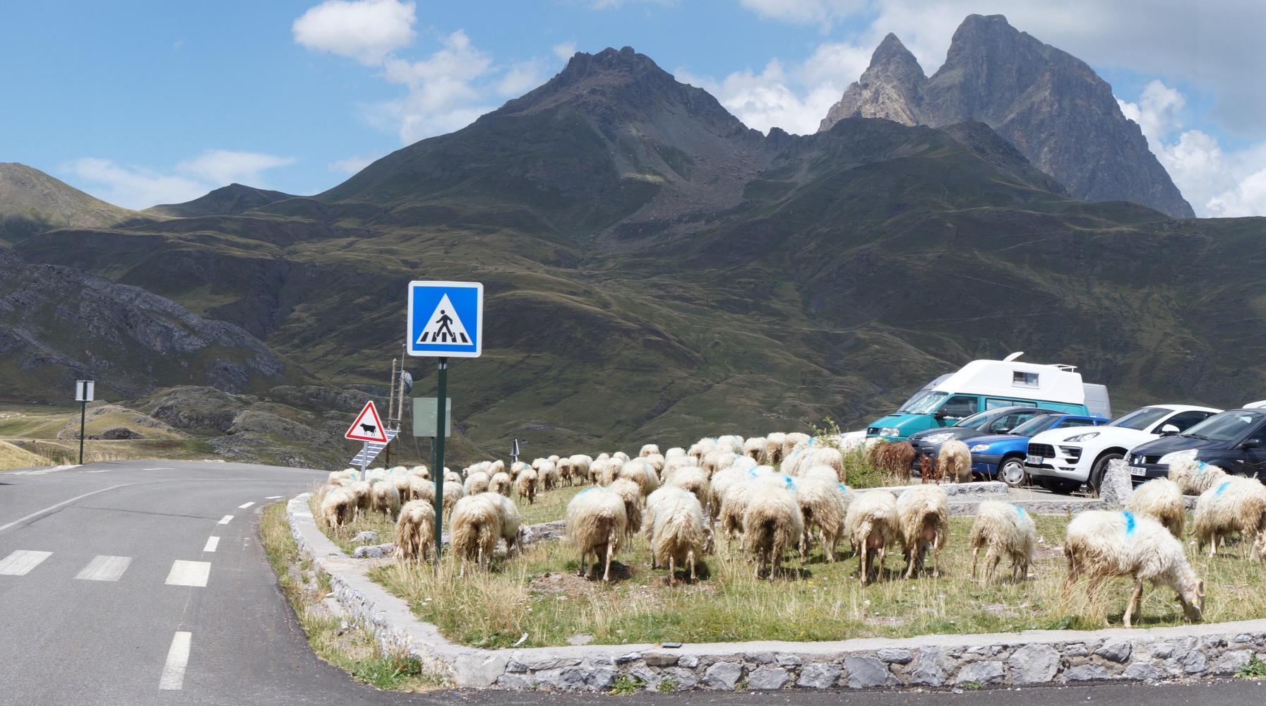 Then the road ahead zig-zags up over a crest and out of sight; whereupon a cyclist passes greeting "bonjour!" and as I follow, the distance between her and me increases slowly as she reaches the first hairpin bend, before which, a young man by a parked car says in a Spanish accent to me as I pass "respect!" and I pedal harder going round and up the steeply banked bend.
