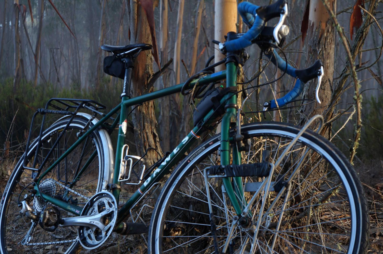 A party of hunters riding in a pickup truck lurch by upon the gravel track that passes the front of my tent just where it turns a corner and goes up a steep incline. I remain hidden in the tent, not wanting them to stop, but now having reached the incline, the truck halts ticking over a moment. I expect they see the bike and assume I'm not here for longer than an overnight stop. Anyway the truck shifts into gear and resumes labouring up the steep track.