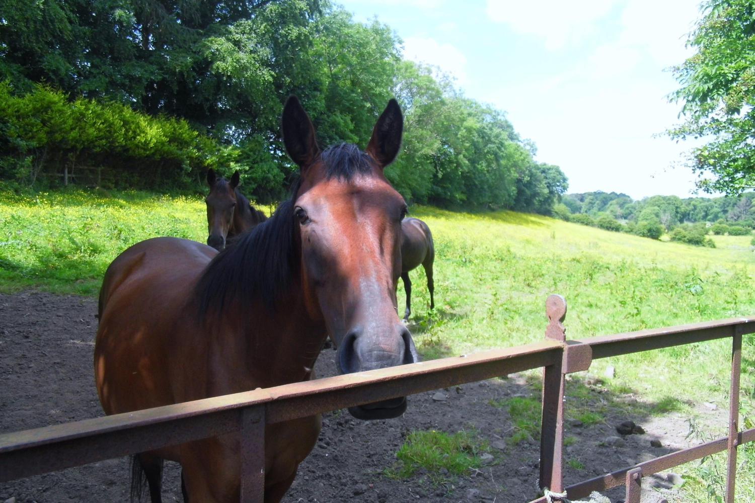 From home not far from the sea, the way is inland, gradually uphill and I'm feeling sluggish. Even though my camping gear is all lightweight and I'm not carrying anything I think isn't necessary, the bike feels as though there are car batteries in the pannier-bags. On the Bann Road, a scenic stretch between the towns of Castlewellan and Banbridge, I'm glad of the distraction when I see a yellow-green field of buttercups used to graze horses, which I stop to photograph. The horses seem accustomed to people and one comes over to the gate to be petted. Another horse following behind as not to miss out, quickly lunges up alongside and bites the first horse below the eye in a fit of jealous rage, causing the first wounded more in pride than physically to move off to the side, then the second offers her head across the gate, wanting this human interaction all to herself.