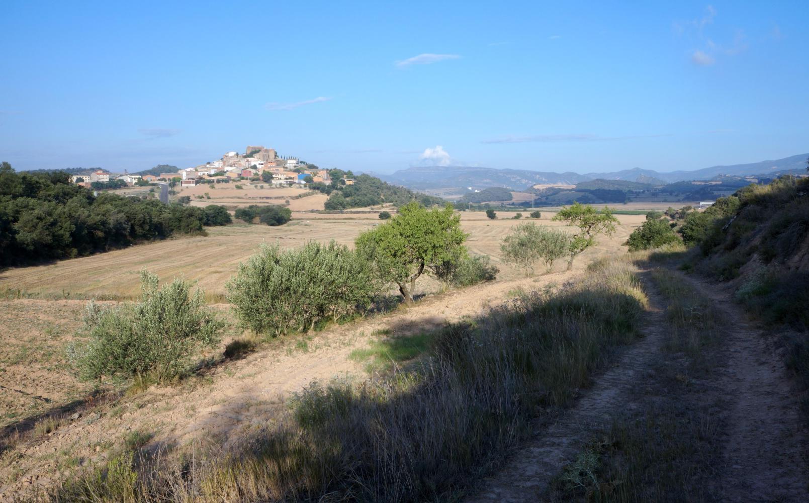 The wind at first was coming from the south, but it has swung more westerly, blowing me about precariously as I pick up speed on the longish descend starting off from the café. I've to be careful to avoid hitting the crash barrier as I counter being pushed out into the road. The wind isn't such a problem further on on the flat. Though later outside Lidl on the way into Lleida, trying to eat a salad box lunch in the shaded front of the supermarket, sheltered from the sun but not the wind, I've to guard against lettuce leaves being blown away by the crosswind where I sit on the curb with my back against the window.