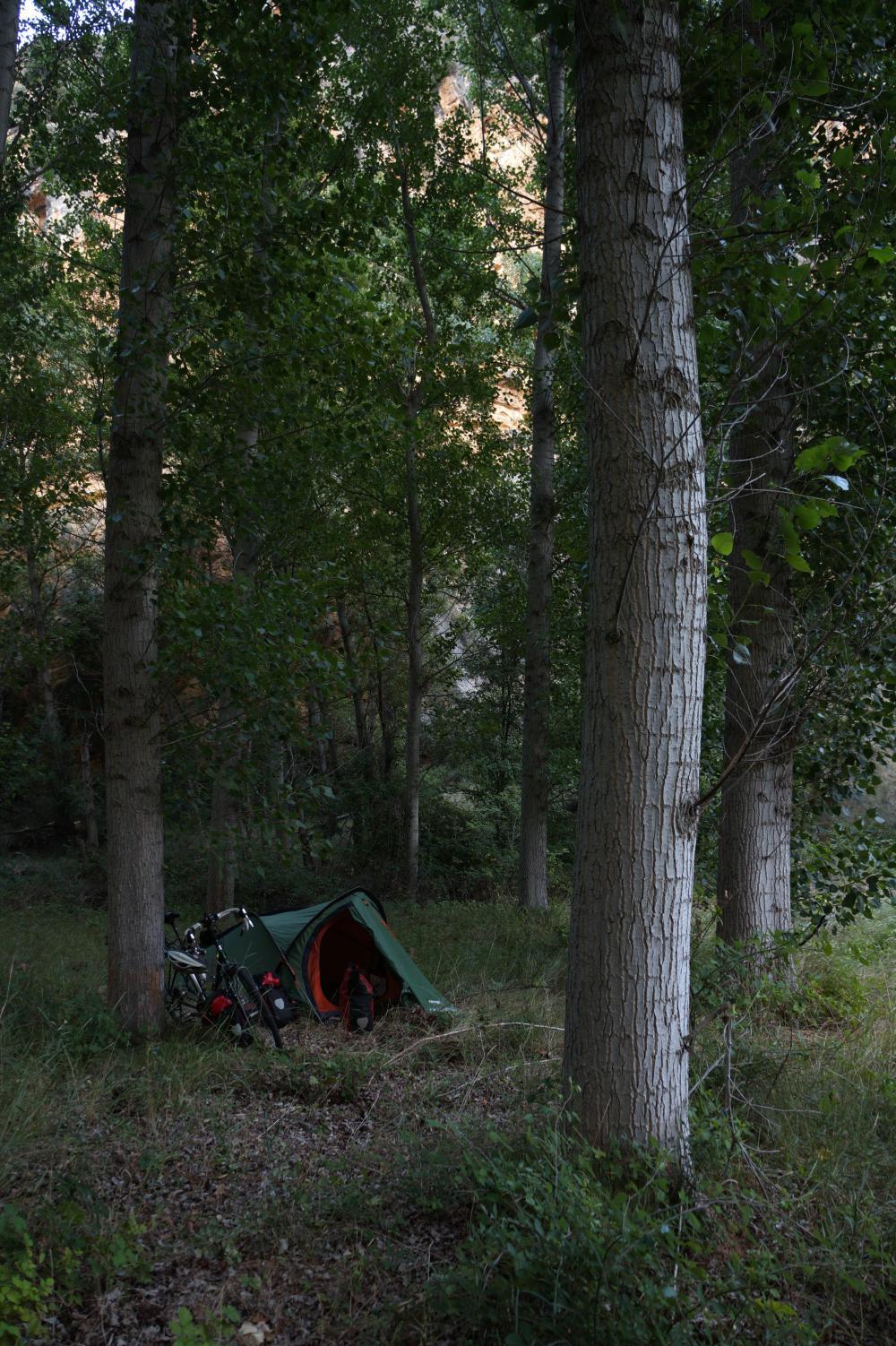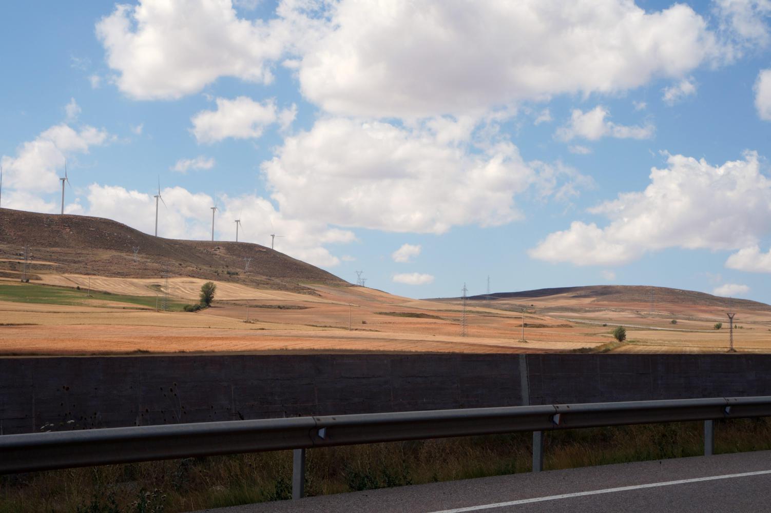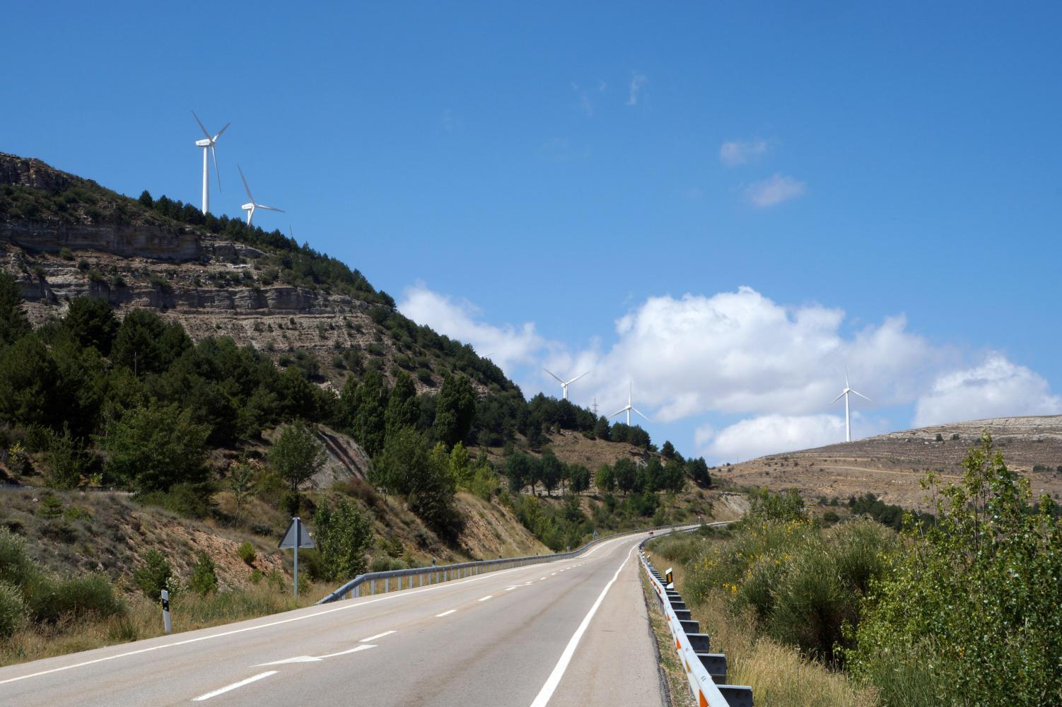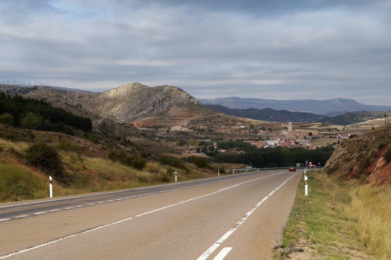 I take the climb in my strife up pass the old mining mill where the road curves around to the right up towards the wind turbines that line the brow of the hill. The road levelling out on a windswept plateau, then after a bit sweeps down. I camped at the first pine plantation the last time. The following day I stopped early, about ten kilometres beyond Terual I was feeling tired that day and I camped in a stand of beech trees by a river. I'm aiming for the same place today.