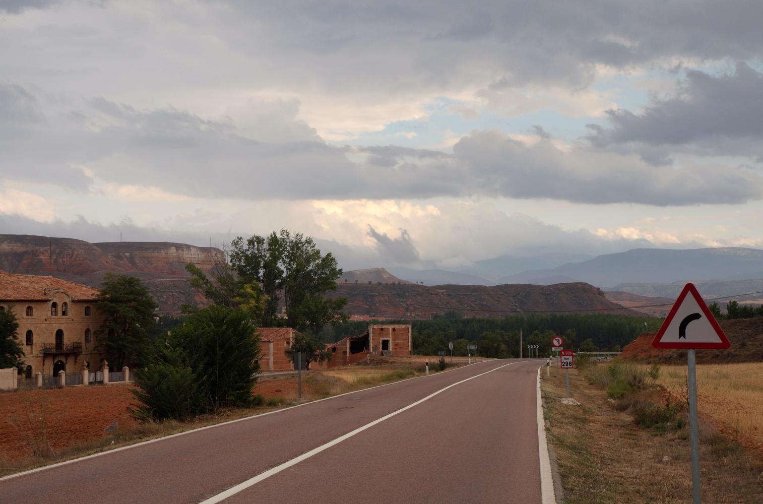 Soon I descend to the day's first village built on the slope back up and as I climb, I pass a café with two sitting outside. Typical Spanish chatterboxes. The younger man calls out to me "Adonde vas?" "Irlanda" I reply. He then invites me over for coffee. An offer I politely decline, saying I would rather keep going. My target for the day being to get beyond Teraul, which is quite a distance. I smile and wave and continue climbing.