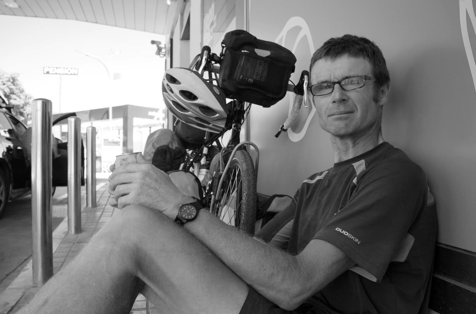 I load up my shopping and ride back up the steep hill to a shaded bench I passed. I slurp down cola. Then drink more slowly as a feeling of dizziness overcomes me to almost on the verge of throwing up. Am I becoming sick. I think of the big salad for dinner at the hotel the evening before. Salad the classic carrier of harmful bacteria. Then remember Brian the solder from the hostel in Carcassonne saying about dehydration leading to sunstroke when I told of the time I was sick in South America, frequent vomiting and diaharea lasting a couple of weeks. I couldn't understand why as I hadn't eaten anything untoward.