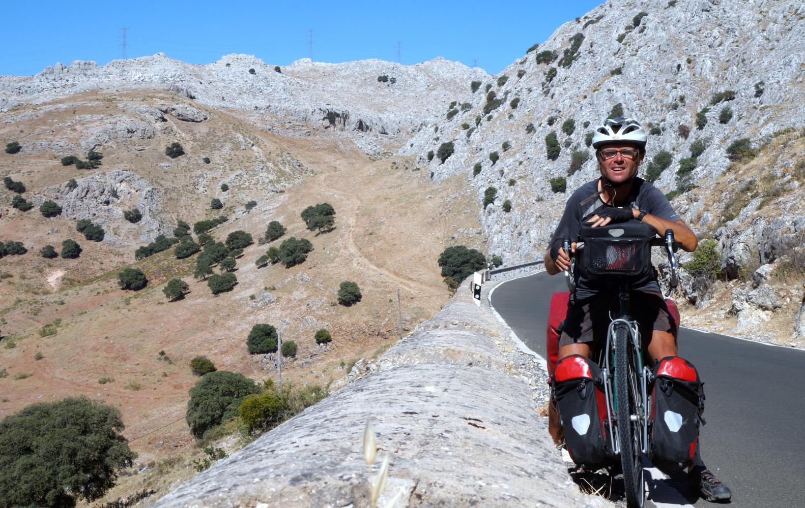 The narrow valley enclosed by towering mountains either side. At Parra this valley widens somewhat towards the coast and although the turning for Ronda leads up a breach in the steep valley side, giving the impression the road may follow a valley all day, there is no doubts in my mind I'm in for a dog of a day of hard climbing.