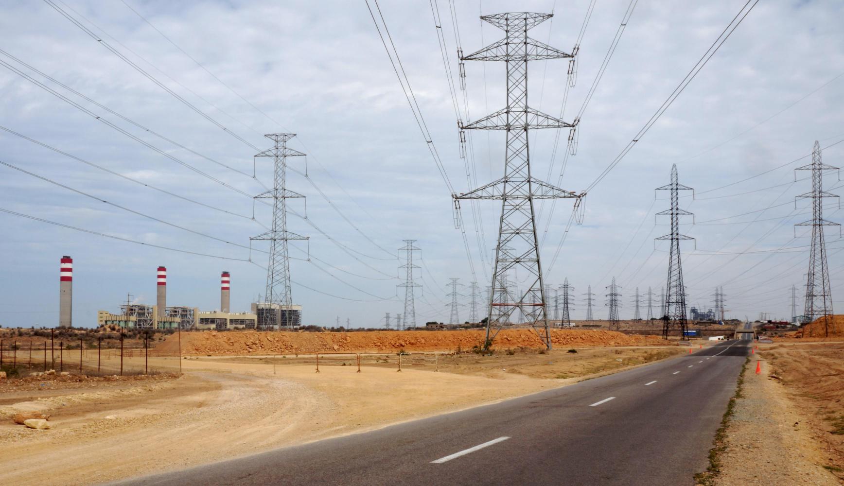 The road this morning deteriorates to the most appalling surface I'm ridden on. Deformed and uniformly fractured like broken glass with a few centimetres wide crack between each piece, which the front-wheel jars into as I approach stark red and white striped power station chimneys on the shore side and pylon and power-line forest thereof.