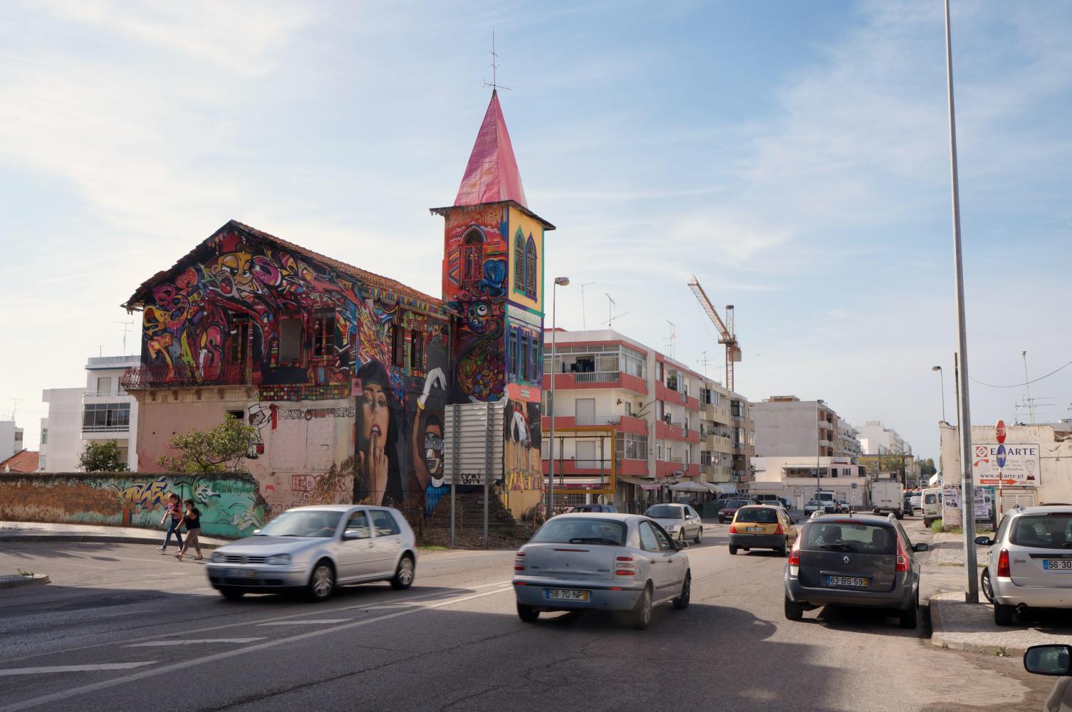 On the third day I'm pulled up by traffic police. Going through a roundabout leaving another town, the way ahead is onto the motorway. There's a pie-sign with a pedestrian in a slice, horsedrawn-carriage in another and cyclist in a third. There's no sign for the N122. So I ignore the no-cycling sign and continue on the shoulder, hoping it'll only be for a short distance, as the next town, Portmao is only a few kilometres, and possibly regain the other road there.