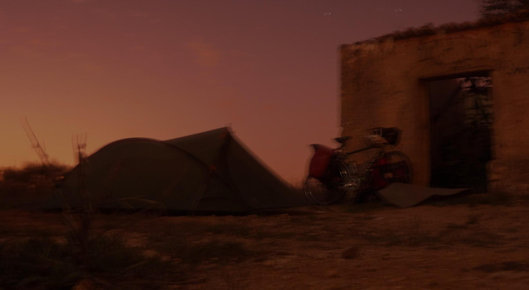 Last day in Spain and the sun hasn't risen yet as I eat muesli. The eastern horizon crimson and the air cool. Shortly I hear the tug of a tractor engine. I listen. It is only a few rows away in the orange grove where I've camped. Tea is brewed but I've got to get out of here fast. In haste I pack the panniers and take down the tent. By then the tractor, a NewHoland with some kind of spraying apparatus on the back is now coming along and passes in the next row. The driver keeps his eye carefully on the job in hand and perhaps doesn't see me between the orange trees.