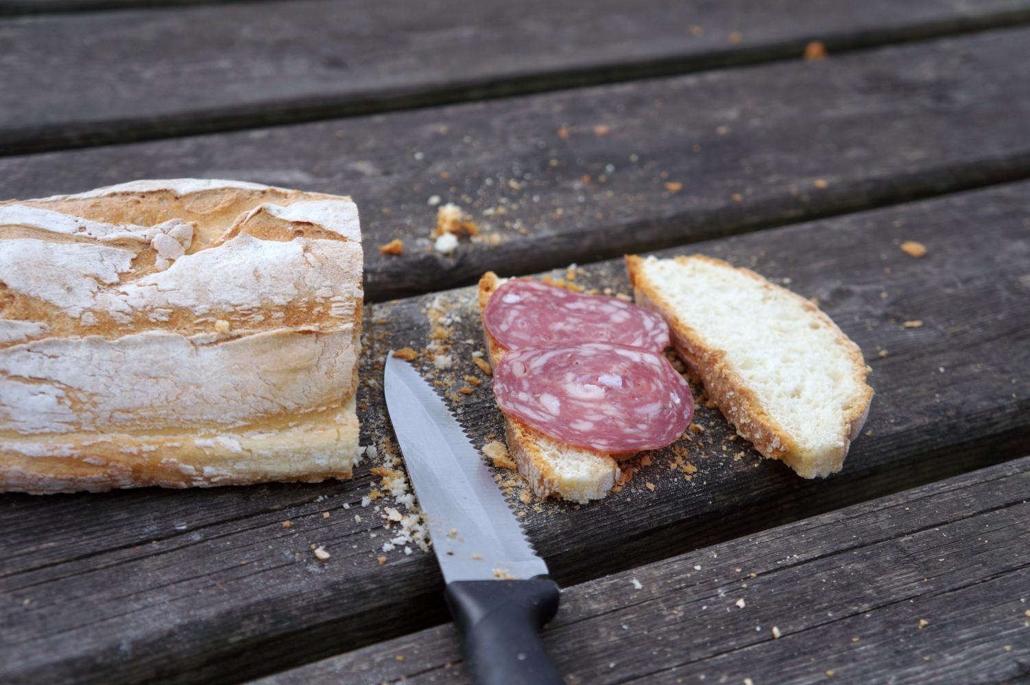 The rain is more pain in the arsh than any thing else. I've already packed my shopping in the pannier and now I've to take it all out again to get at my rain-jacket. And, I've to take off and pack away my down-jacket, as I daren't risk getting that wet. The rain doesn't amount to mush more than a few more isolates spots as I tackle a three kilometre long seven per cent gradient away from town. And cresting the hill, the day has become extremely cold with the sunless dull sky looming low round the mountains, especially on an equally long descend, which takes me down to Savona with picnic tables on a grassy triangle at the town's entry-exit road where I stop for a lunch of tasty bread and salami: eaten in haste, as it is too cold to hang around long.