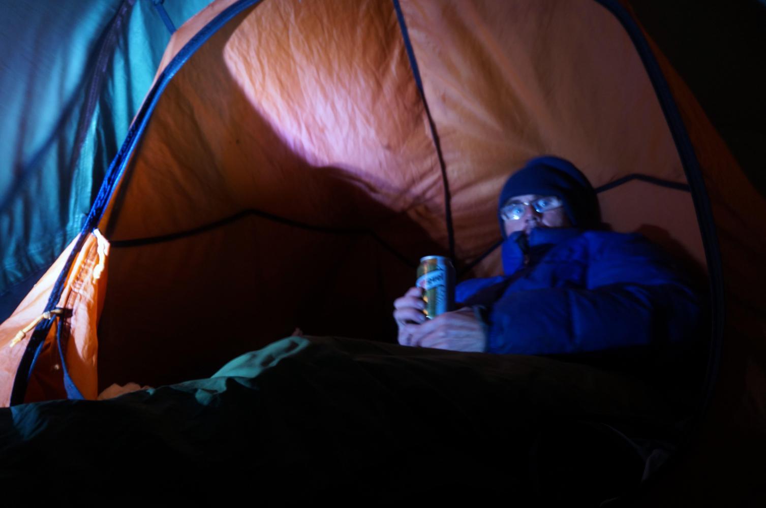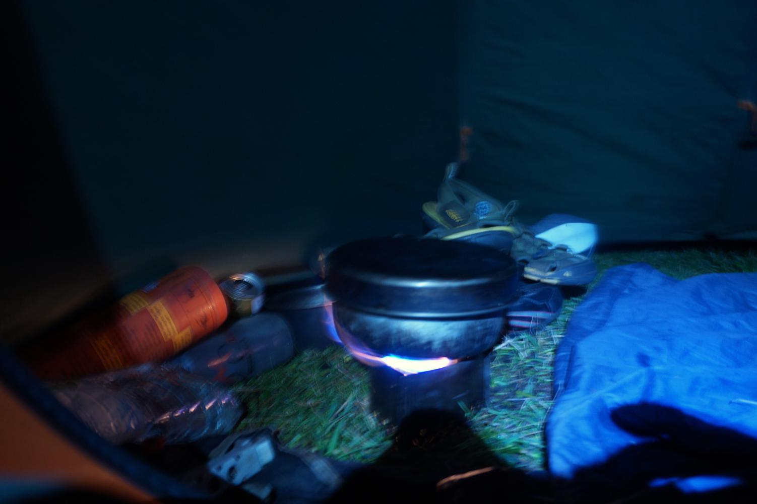 I hear an owl hooting. Later in the night I'm awakened by a buck-deer making an eere ghoulish almost human cry. The deer stands it's ground close by the tent for what seems an age, repeating it's cry, before bounding off through the woods.