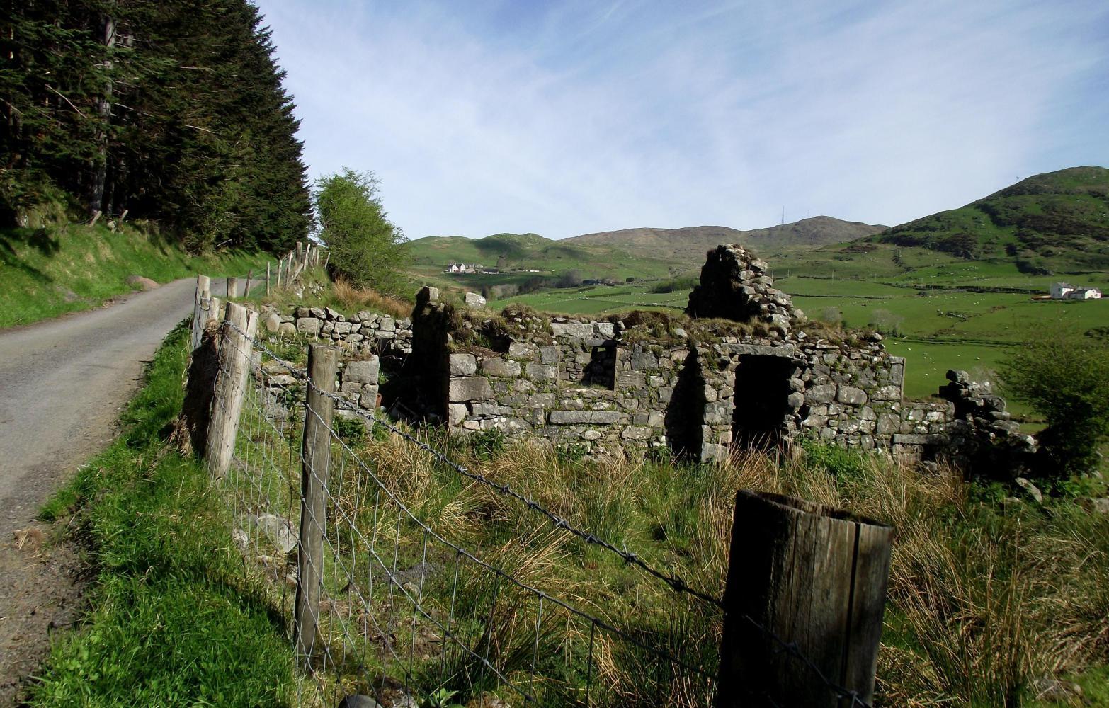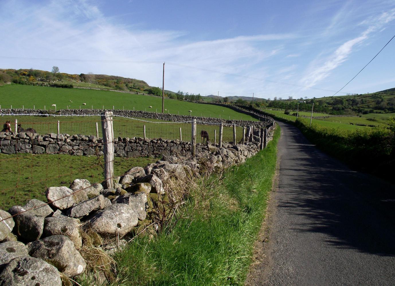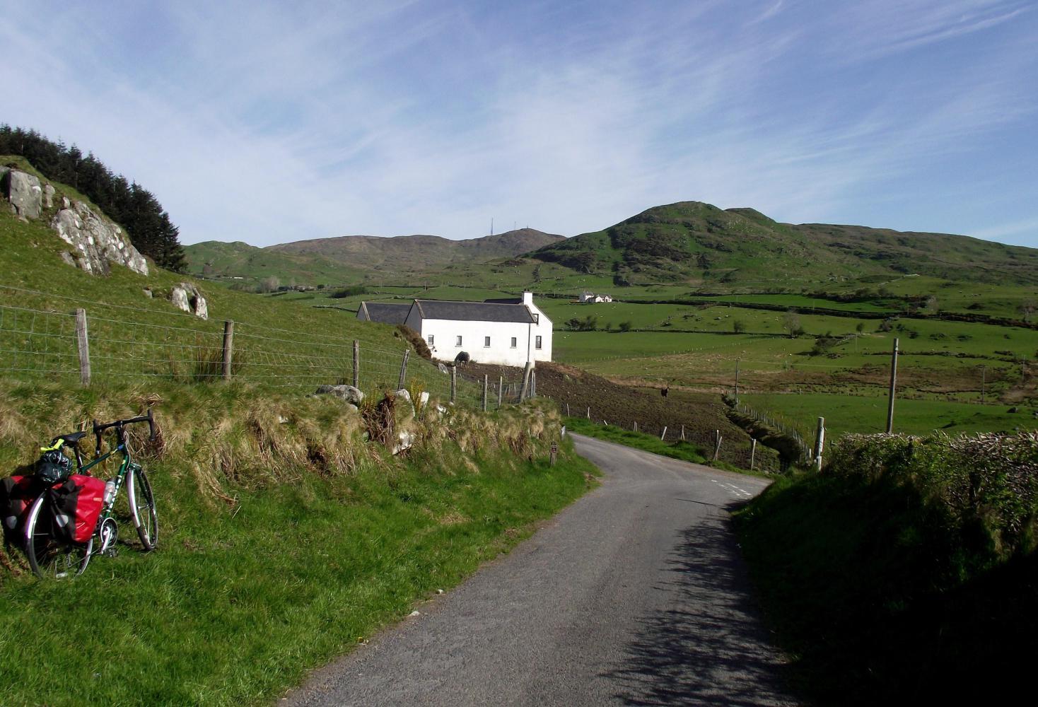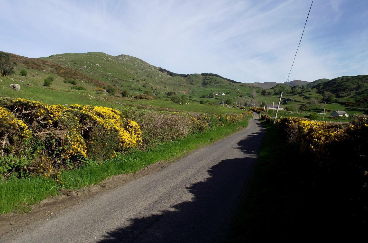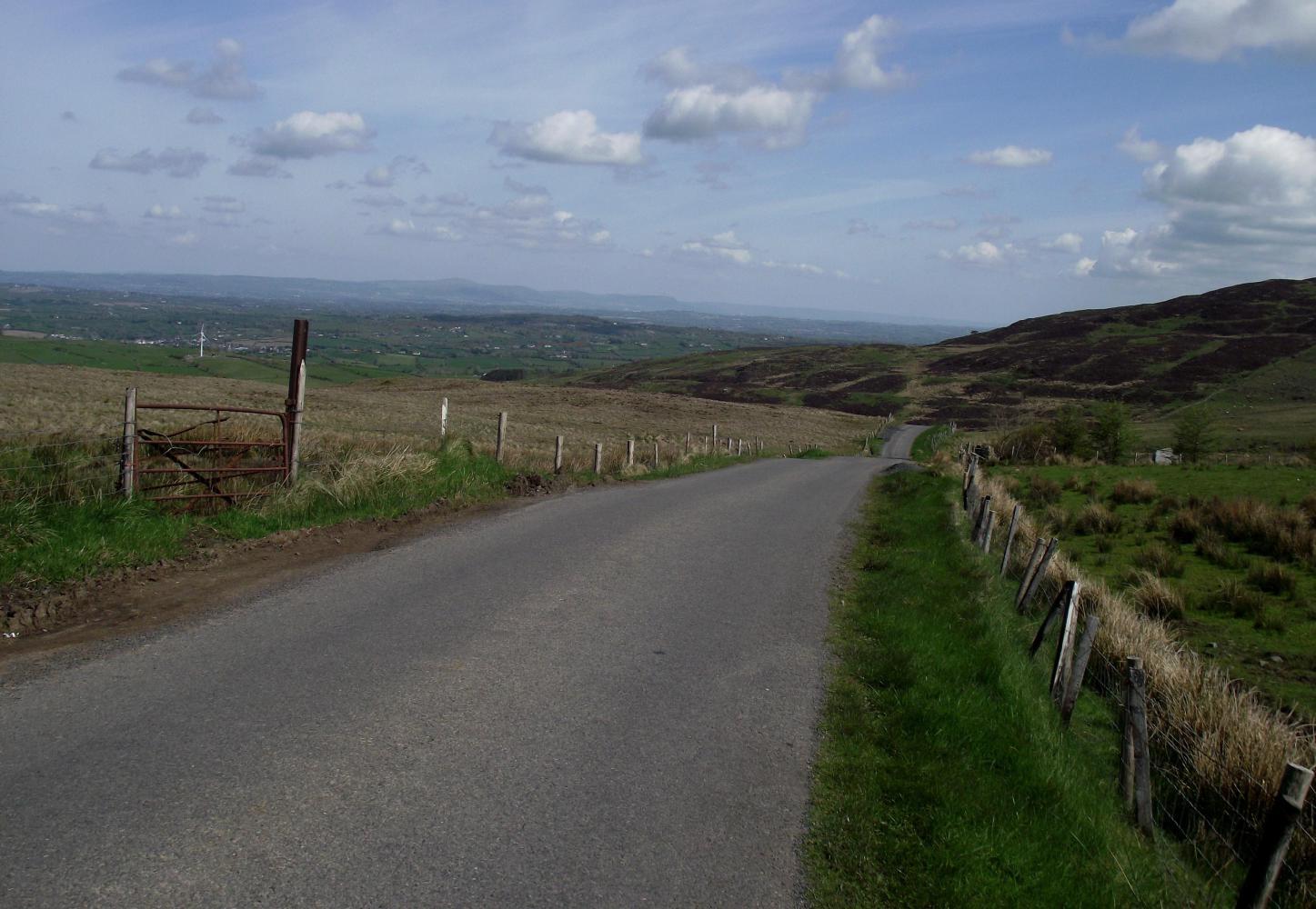 From home near sea-level, the ride took me to the summit of Slieve Croob; a mountain geographically in the centre of Country Down, and although only 540 metres altitude, is a lone monster seen from a long way off in all directions. I approached it from the south on small single-track roads which wound their way over minor hills.