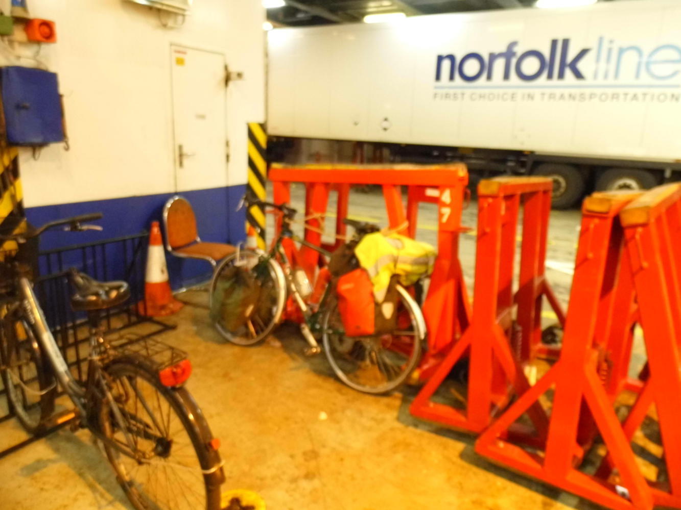 Following his directions I eventually reached the grey wasteland of lines of slow moving trucks and cars, with shipping-containers behind chain-link fences at the side and the ship ahead with a wisp of smoke issuing from the funnel.