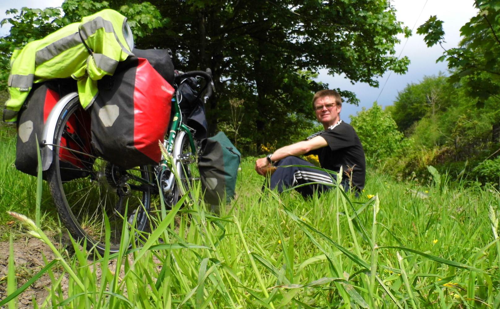 The front-panniers were there for the first time today. The front-wheel pulled left, meaning the left pannier was heavier than the right. I'd packed my spare clothes and wet stroke cold weather gear equally between both, plus food. It included a five hundred gram tub of Couscous which was in the left side, so I stopped and switched the Couscous to the right; problem solved