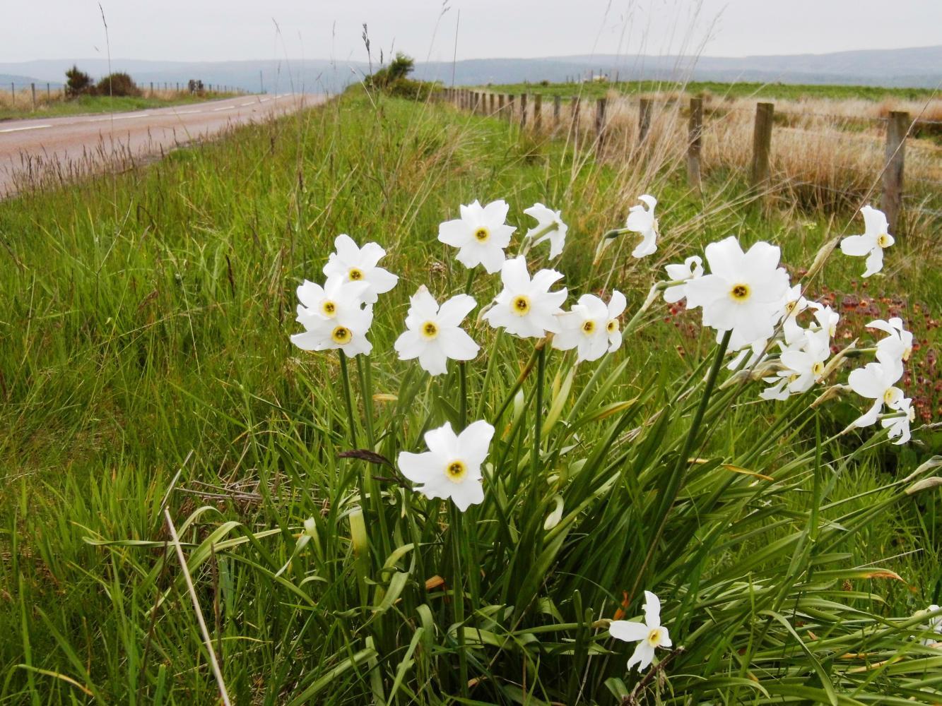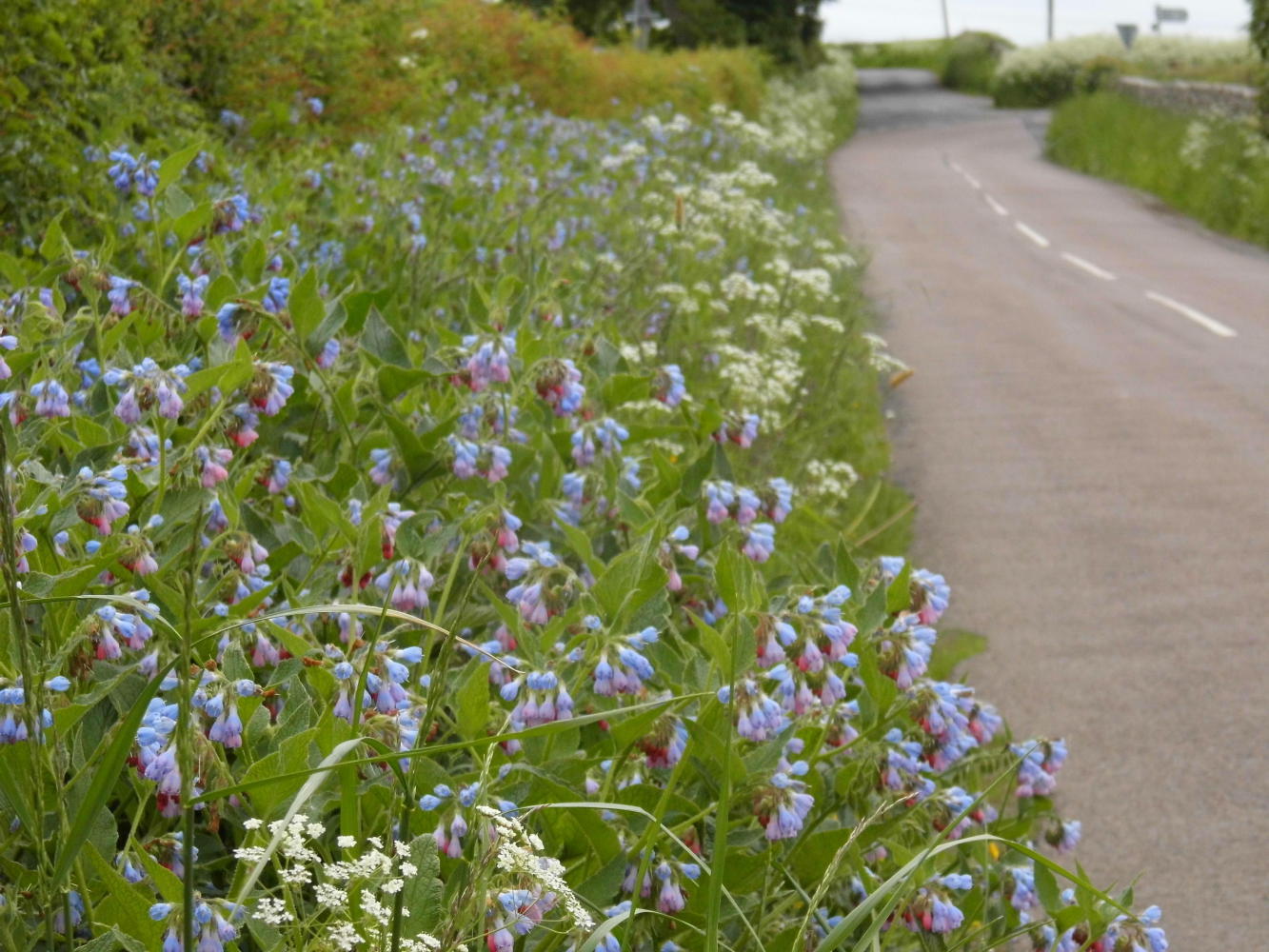 And so it was not tough. I was able to remain on the second sprocket from the spokes while on the middle-ring and wasn't long crossing the last rise, where I stopped, not because I needed a rest, but because there were flowers by the roadside I wanted to photograph. Is thinking because it's so grey today, I'll have to take pictures of flowers and other in close macro stuff; and also, the landscape was nothing much to write home about unlike the previous days further north.
