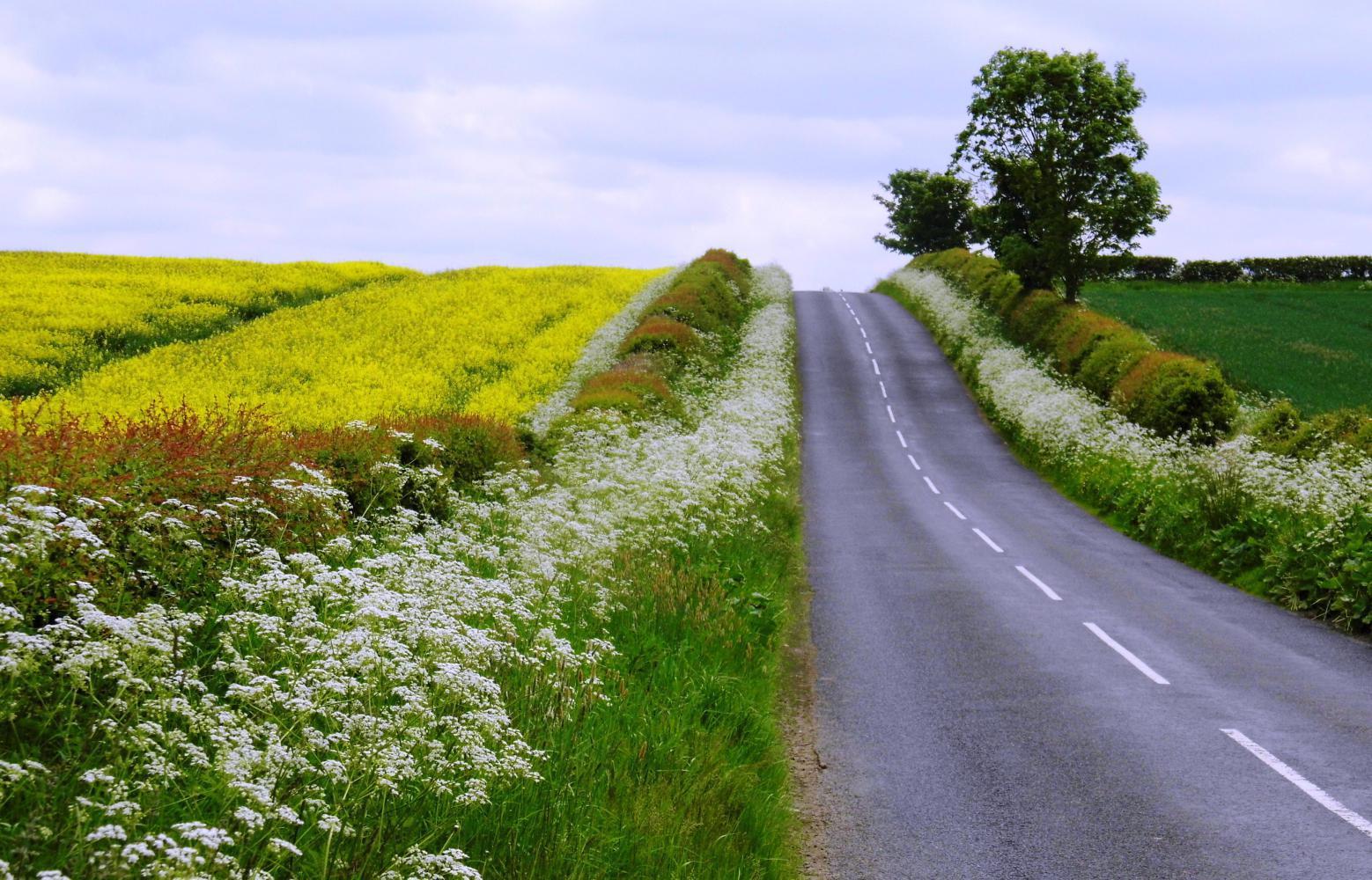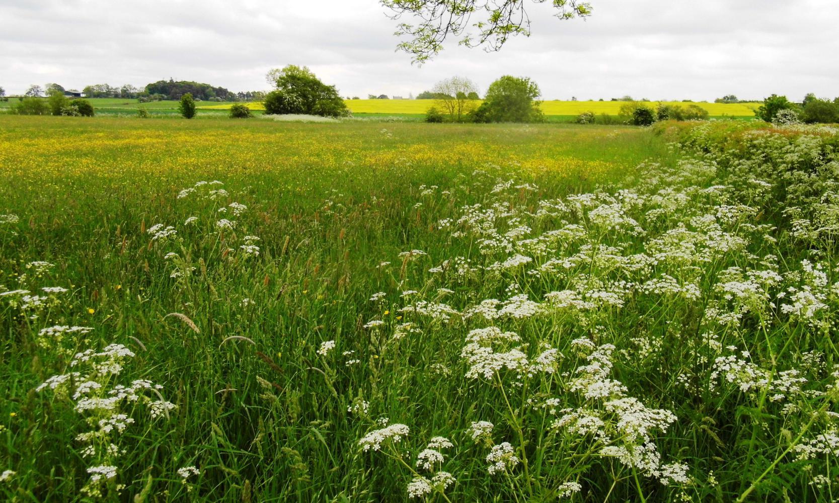 I was headed to Ponteland which had an aeroplane on the map with Newcastle International next it. I still needed lunch so stopped when I came to an open gate into a wild flower meadow, outside of which, was the concrete head and railings of a drainage channel underneath the road. I leaned the bike against the railings and sat down on the concrete, using the railing as a backrest. There was a bit of a breeze so when I lit the Trangia stove to boil water, the flame blew sideways and so it was taking longer to boil. In the end I'd to sheltered it with my chopping-board.