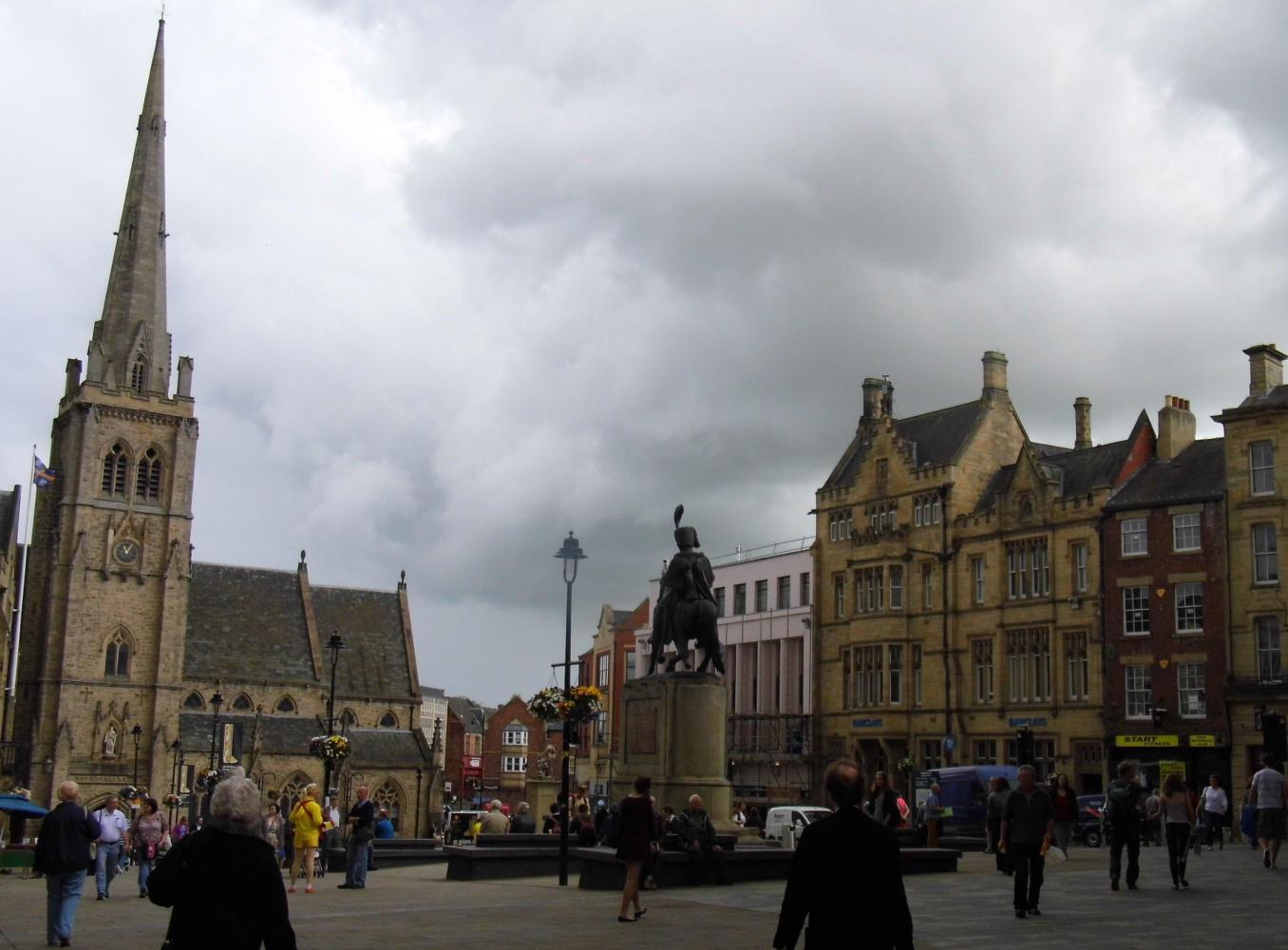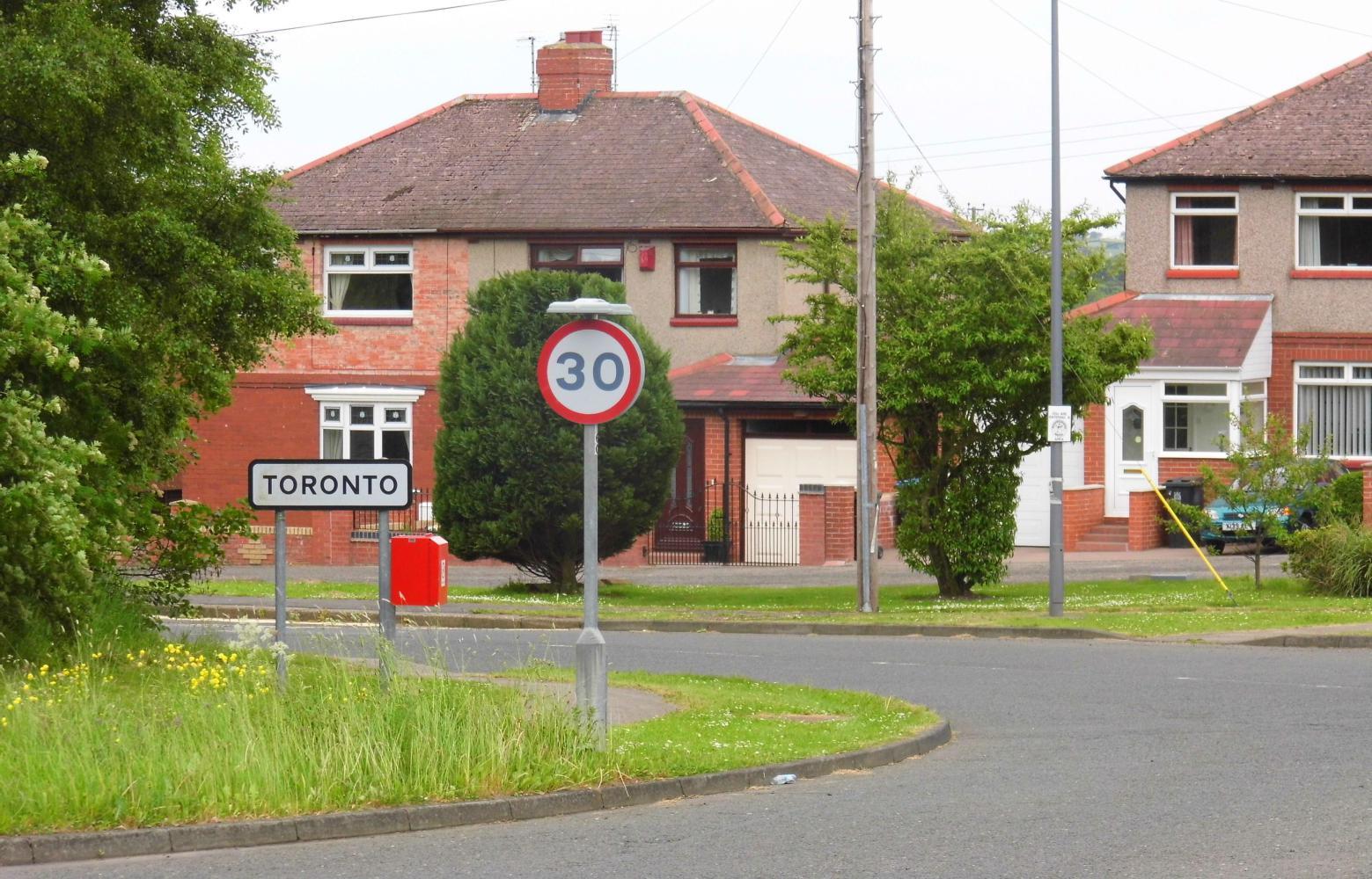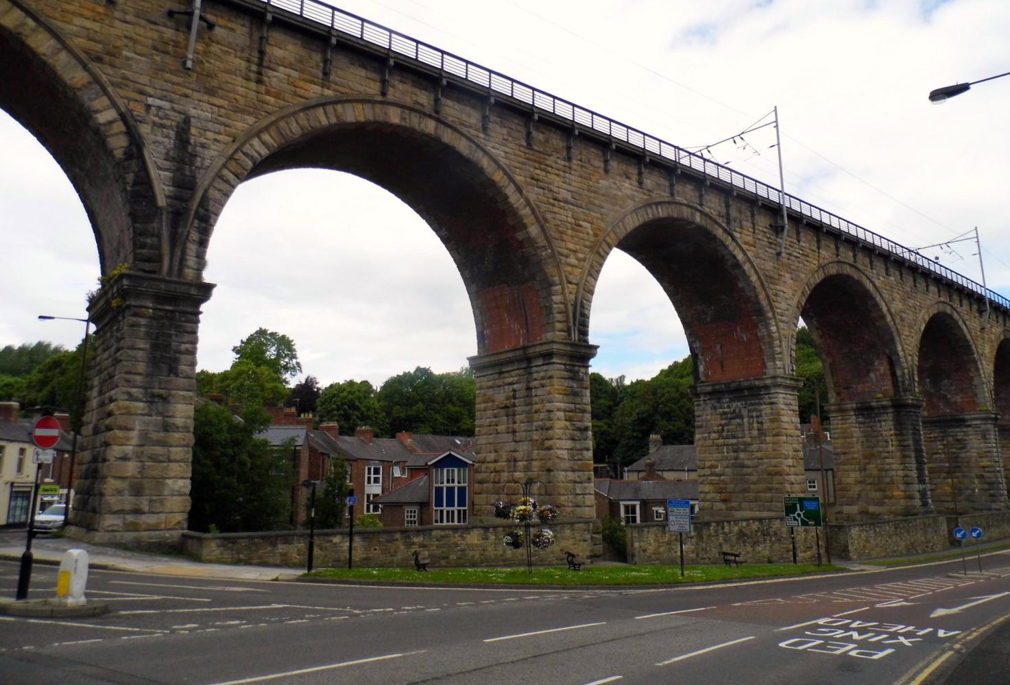 I found one use for the atlas, to sit on on the damp grass on the wide mowed verge where I stopped to lunch along the road onwards. The road seemed to be one long gradual climb toward the Pennine mountains, to a place called Crook, which my route veered south towards Bishop Auckland before reaching. I was now on a B road with the greens of wheat and barley and yellow of rape-seed either side, passing through quaint villages and following the sign for the route onwards. Eventually Is back on the A road again on the way into town. All the signs where for Darlington and Stockton-upon-Tee, just west of Middlesbrough; or, the blue cycle-route sign was for Barnard Castle, which was well off the direction I wanted to go. I followed the blue signs anyway and it took me by the part of town called West Auckland.