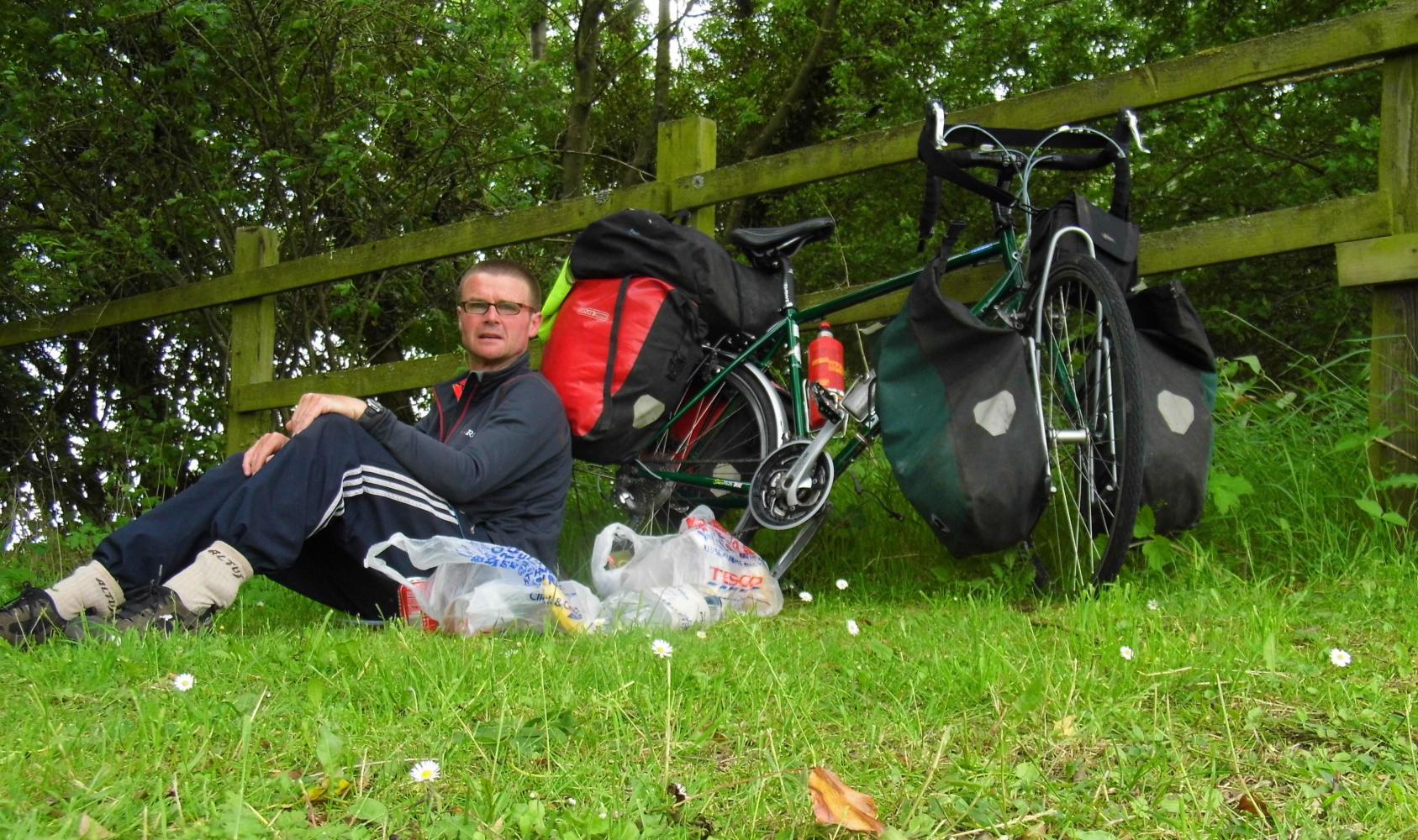 Riding out of East Rounton, the road was enclosed by a canopy of trees with a woodland grove on the left in which there was a gap through to a gate into a field, overgrown with waist high nettles and wild grasses so clearly not in use, it provided perfect cover for my green tent.