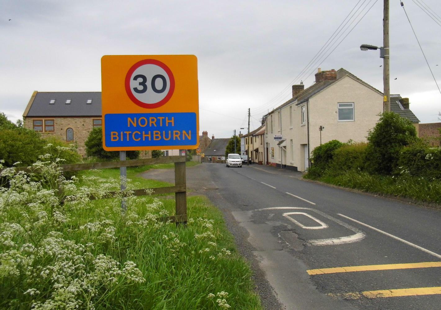 I was heading back into open country. I had ignored the blue cycle-route signs and instead was cycling on the shared use path at the side of a dual-carriageway. I had seen on my atlas a squiggle of two parallel lines lead off the main road to a place called Templeton from where there was a straight line of a B road to a place called Peasebridge and onward to Scotch-Corner. I knew the path at the side wouldn't last and was anxious to find my way off to this road, so it was a relieve to see a sign: Templeton at the next roundabout.