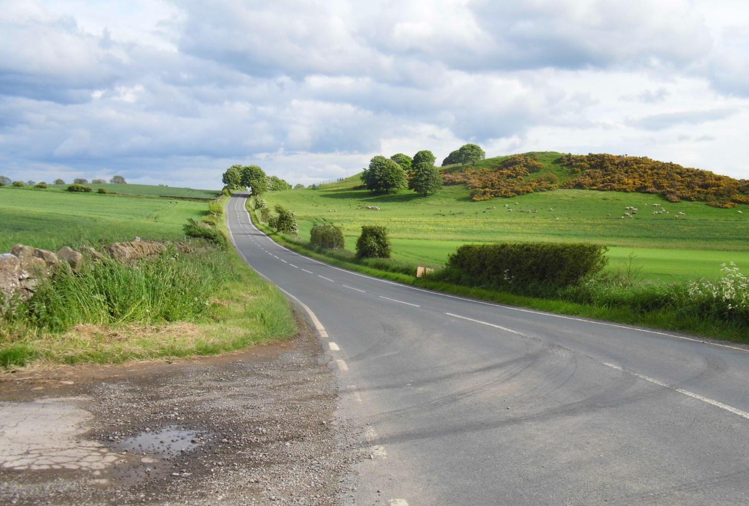 At last I was on the sort of road I would've liked to have been on all day, riding through rolling farmland and through rural villages. I passed over the river Tee and into the county of North Yorkshire and headed for Richmond, even though the B road continued straight on to Scotch Corner, the services on the A1, where the B road ended and I thought maybe there'd be no way past this busy road, and from Richmond there was a road which continued across the A1