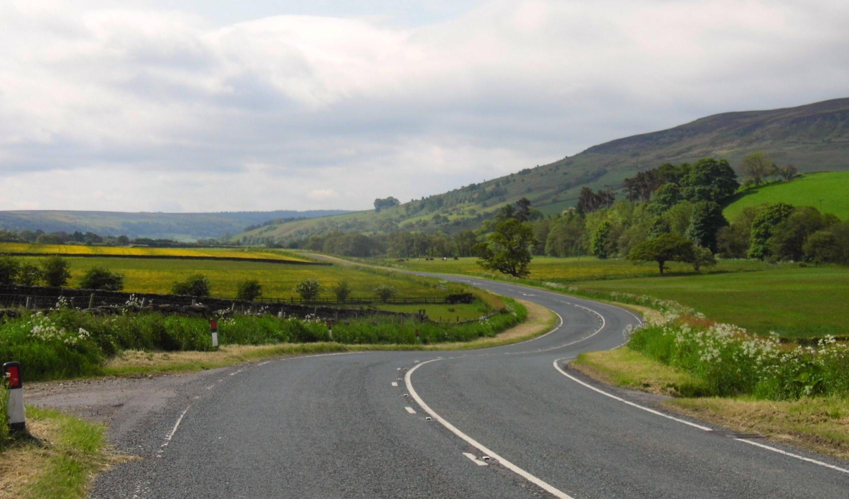 The road went south through Ryedale and was average busy, though not too bad given that the road was across a blank space on the map with few alternatives through the middle of the North York Moors. The road gradually climbed up and then swept down to the town of Heimsley, were all the cars and motor-bikes that passed me were going, as when I got there, the central market square was full of visitors, browsing the market stalls, or sat on the steps around the monument in the middle; there were smalls streets off at the side with no shortage of places to eat. I opted for Fish and Chips, a dish Yorkshire supposedly invented. But I would find them a little heavy while cycling in the afternoon.