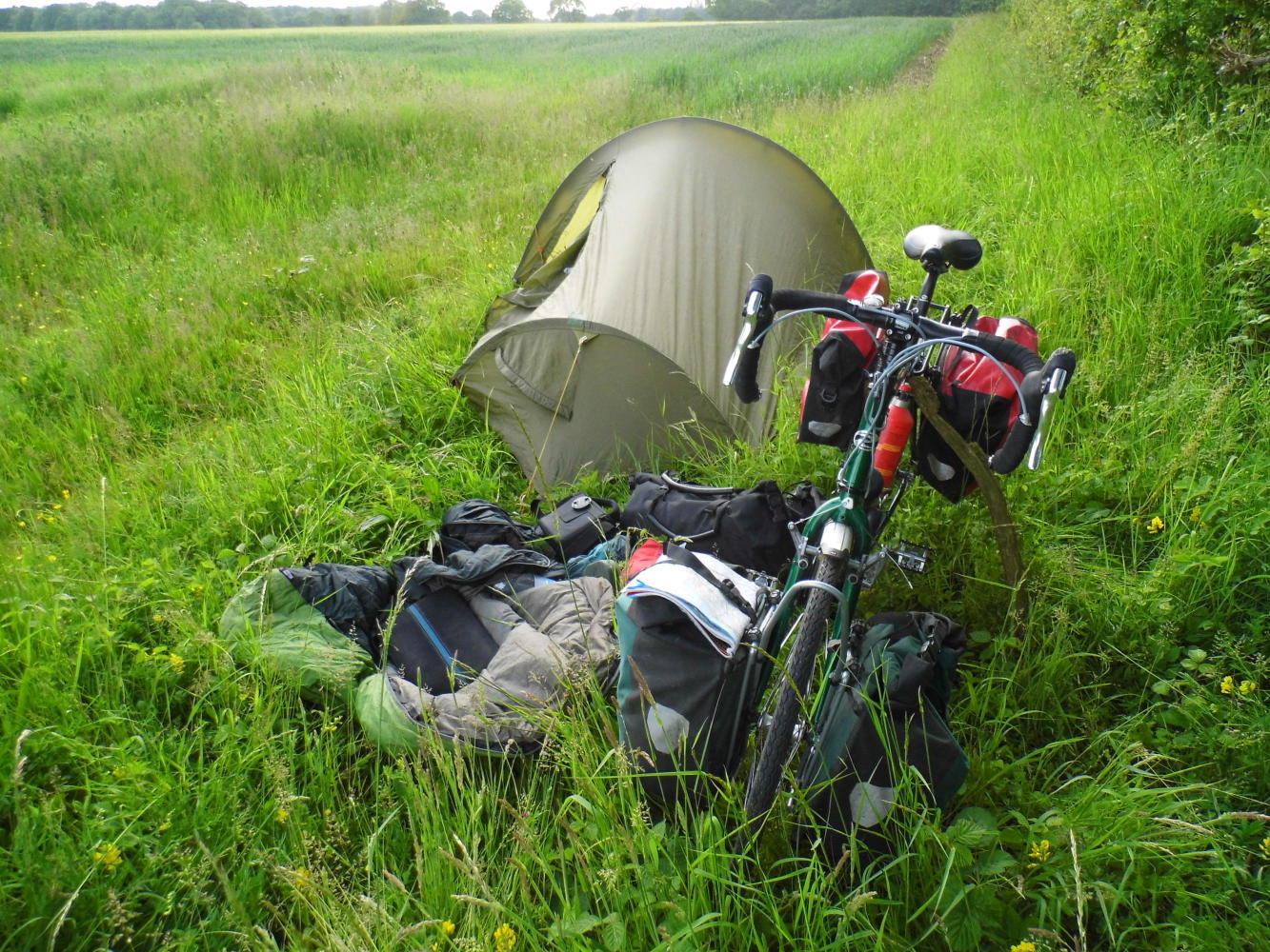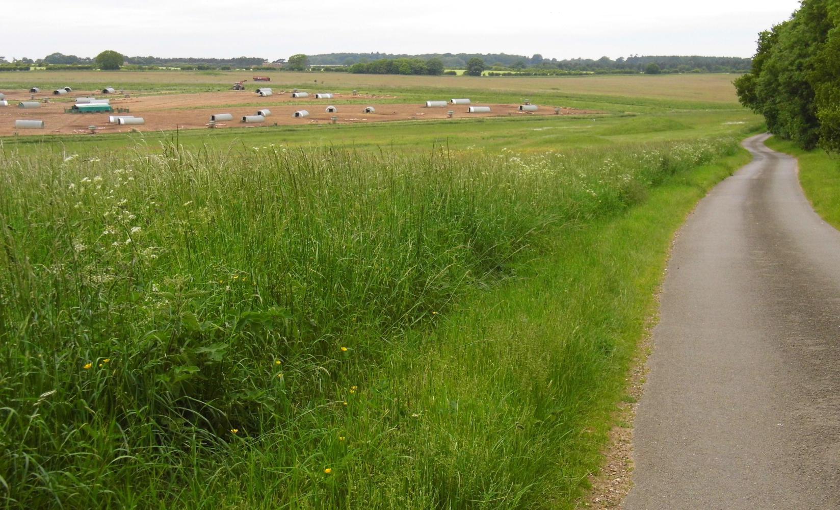 I cycled past Gedney Dyke, beyond which if only I'd known, there were lots of better places to camp than where I finished up yesterday evening, in a field boundary grove not so far from houses. Onward there was a drainage dyke similar to a canal, with a wide bank and hidden from the road by scrubs and trees in places, though the road was no more than a single-track lane and almost traffic free.
