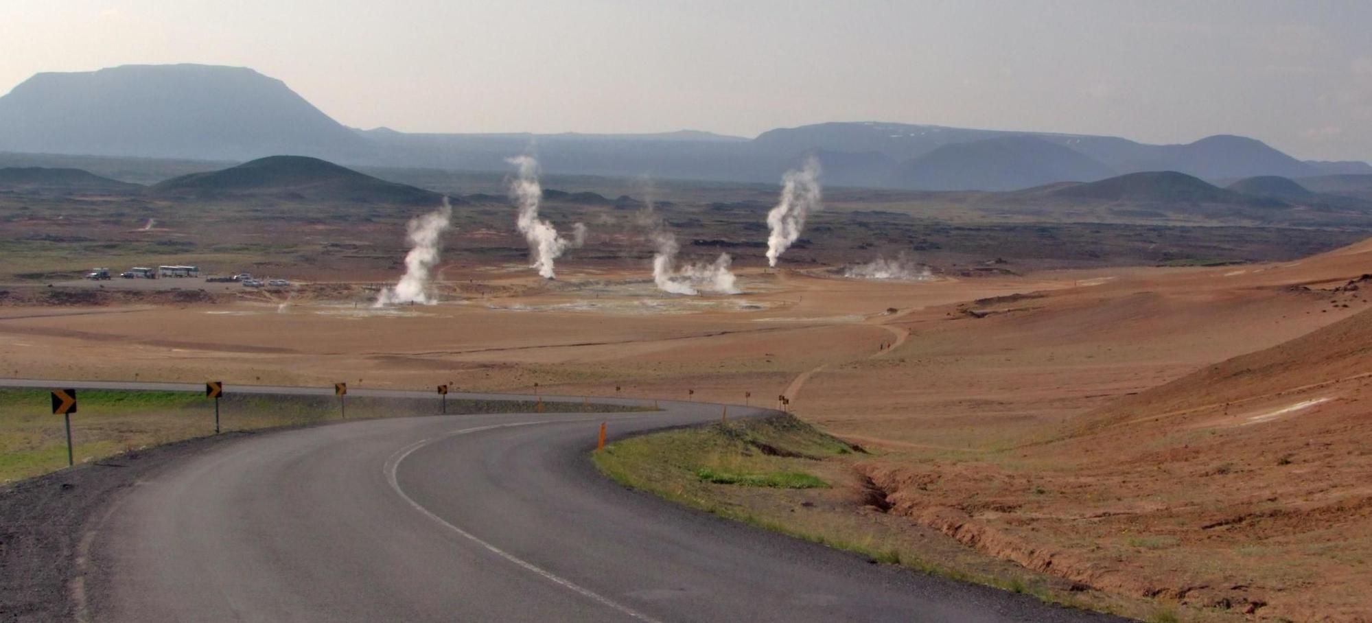 Monday: woke up at eight exhausted after only lying down at four when the sun was already glowing behind the hills to the north east. After breakfast of the last of the muesli and the expensive yogurt from the petrol station in Husivik, I set about the usual chores of a day off the bike, which, began with washing the clothes I wear everyday on the bike. The clothes dried in little more than an hour, as it was another warm sunny day. Then went to the information centre to find out about the route ahead, I intend doing into the highlands. The ranger was pretty knowledgeable. The way I intend going is an unofficial track, meaning it isn't serviced by the government, beginning close to the south side of lake Myvatn and runs south to eventually pass the west side of the mountain massif around Askja to meet the road F910, which will take me east on the southern side of the abovementioned mountains.