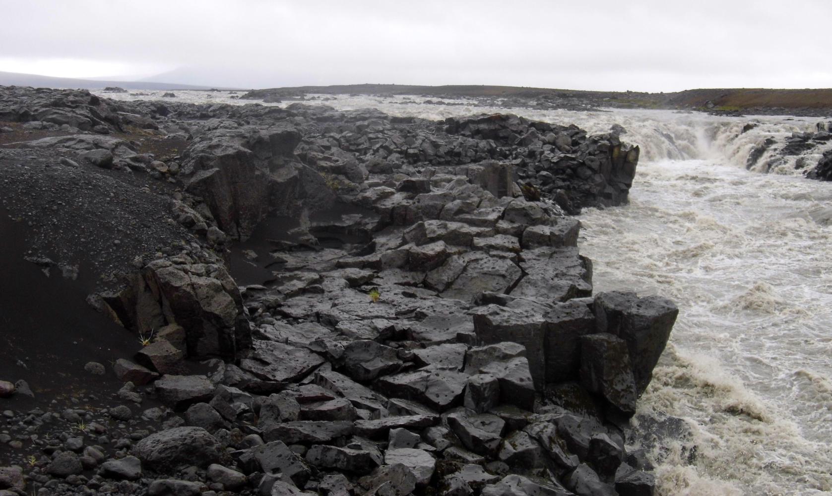 The roar of the river echoed towards me as I got nearer. There was a livestock-gate on the bridge that had to be opened to pass over and closed again. I don't know why as no livestock could survive here. A jeep was stopped, it's occupants out admiring and photographing the roaring cement coloured torrent tumble down into a narrow channel in the lava, as I done myself.