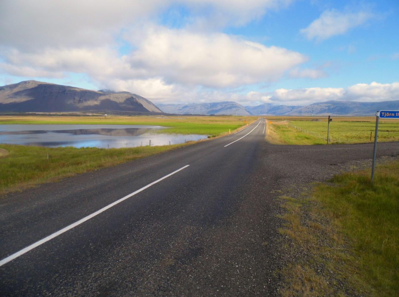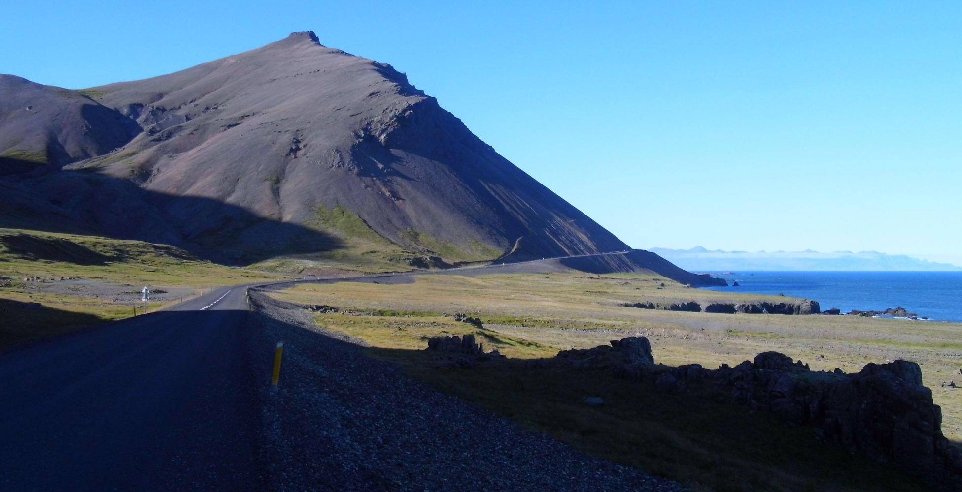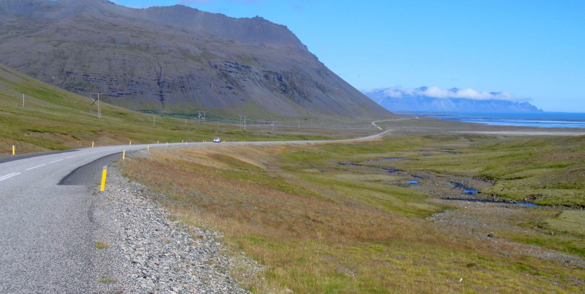 Lately, I've been feeling sluggish; taking all day on a relatively short distance, like seventy-six kilometres on Sunday. Today I wanted to prove that I could still ride one hundred and fifty-plus kilometres; besides, I need to be in Seydisfjordur Thursday morning, to catch the ferry, and I'm one that'll only take a bus if necessary. So, I was riding back the way I'd come. But it was a different day, different weather being warmer and windless, the same scenery, but seen from a different direction.