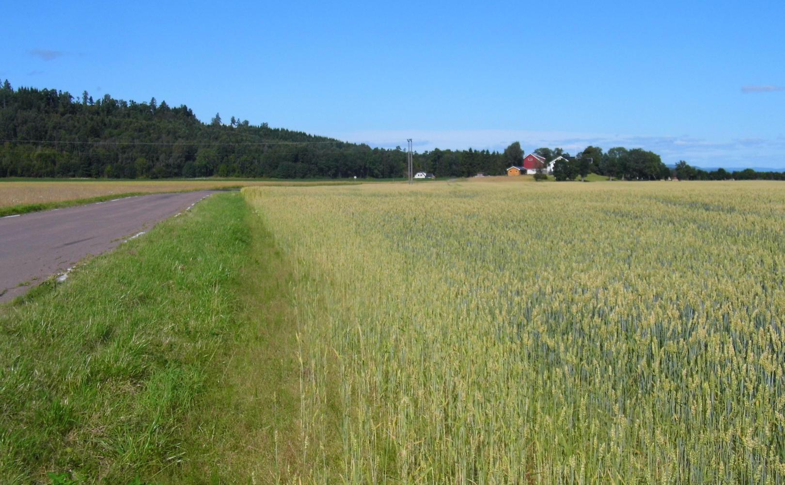I packed and was on the road at half five. The sky in the east was still red and there was a nip in the air making me stop and put on gloves. Then I saw the sun break and rise through the trees, and with a cloudless sky, it would be yet another fine day. I had forgotten water, so stopped and filled the water bottle at a petrol station on the way into Sandefjord and on the other side of town, stopped on a service road overlooking the busy E18 motorway which I would shadow on smaller roads for the rest of the day.