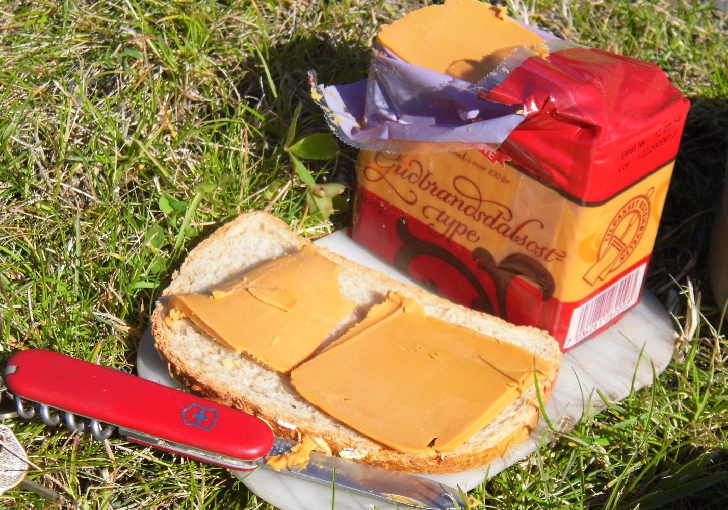 I lunched in the sun on the grass lawn outside a Remi 2000 supermarket where I bought only, bread and cheese plus bananas and an apple, costing a total of one hundred and twenty-six kroners, or thirteen stirling. A lot, though the bread is excellent whole meal and I'll be making it my stable, eating to both lunch and dinner. The cheese is brown and has a unique sweet taste which I like.
