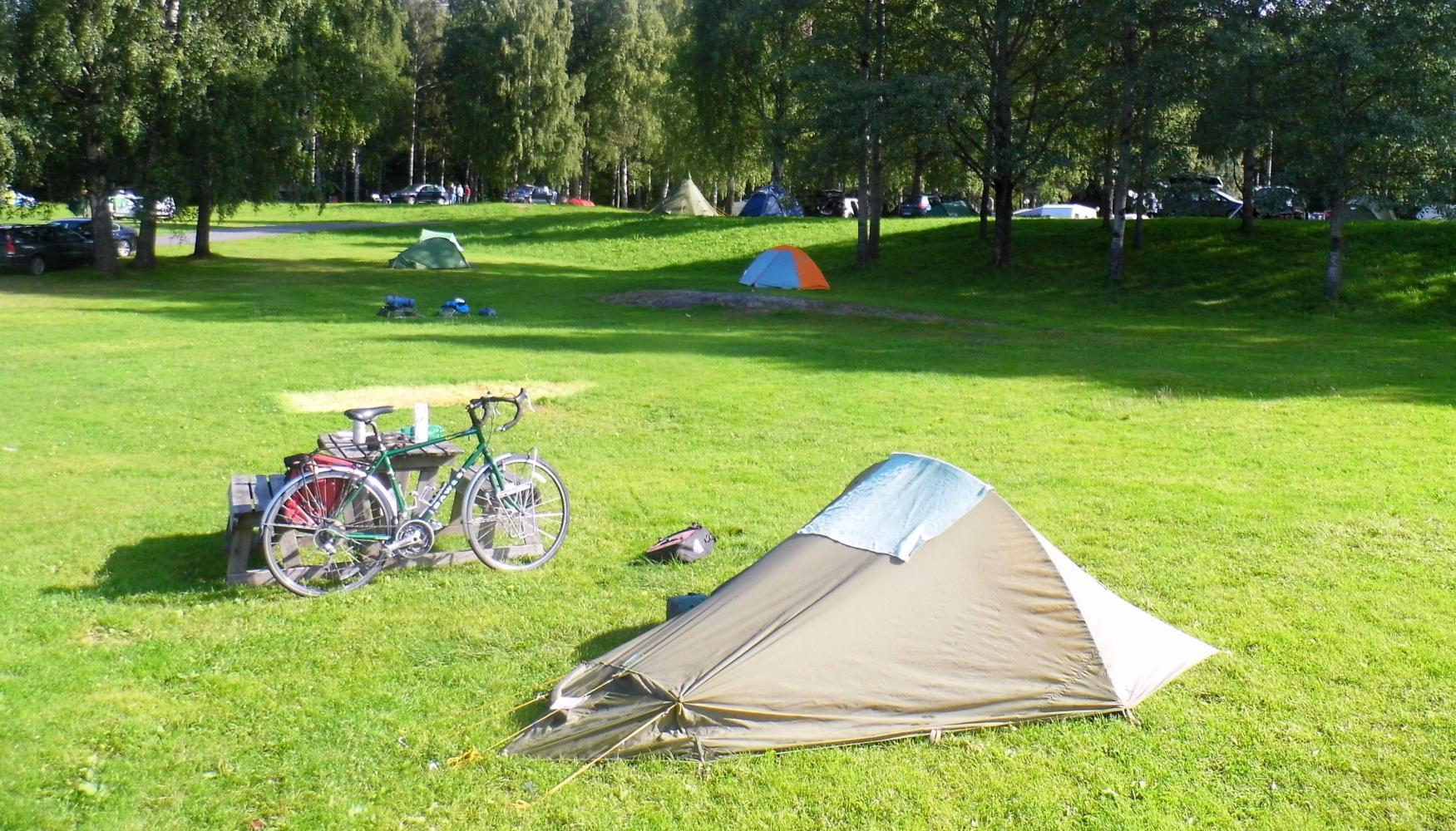 I arrived done out and said hoarsely to the receptionist, "one person and a tent" and as she looked at me quizzically, I said "I'd like to camp" "It's one-hundred and eight-five kroners to camp" she snapped. I think she had had a long day too. It was the most I've every paid for camping and it cost an extra ten kroners for a shower.