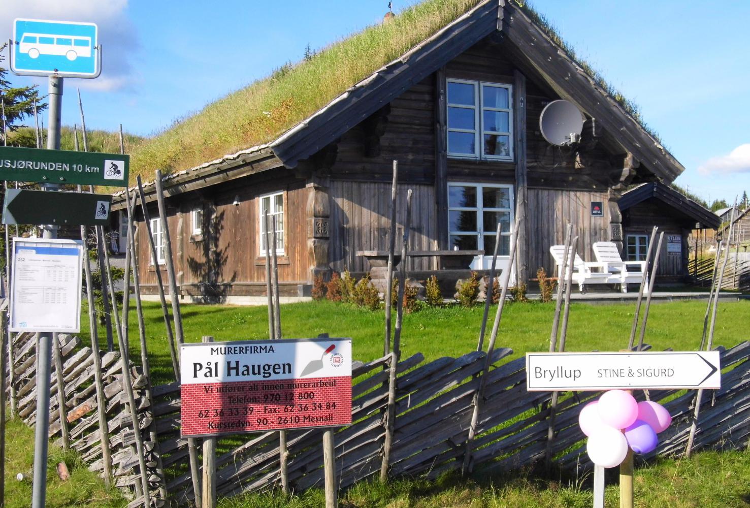 It was a long winding steep climb away from Lillehammer in the warm afternoon sun towards a place called Nordseter. I was concerned because the map didn't show clearly whether the road continued after Nordseter across the mountain, so I stopped a couple in the shared cycle-pedestrian-path and asked. The man assured me the road continued winding up, waving his forearm back and forth to demonstrate; which I found not long after to be bull, as a few switch-backs more, the road turned straight at the mountain with the gradient going from a modest seven per cent to between twelve and fifteen. Though after all the climbing, I found a village, well more a service centre for all the weekend houses shattered over the hillside, with a supermarket where I got rid of the growing weight of Norwegian coins in the wallet buying a cold bottle of Sprite and a cocanut and vanilla bun. The way onwards was what I'd been looking for, the Birkebeiner road, a dirt road across the mountain, and also a famous, well in Norway anyway, mountainbike race which had notices in black-marker on pink and orange card informing of the race next weekend.