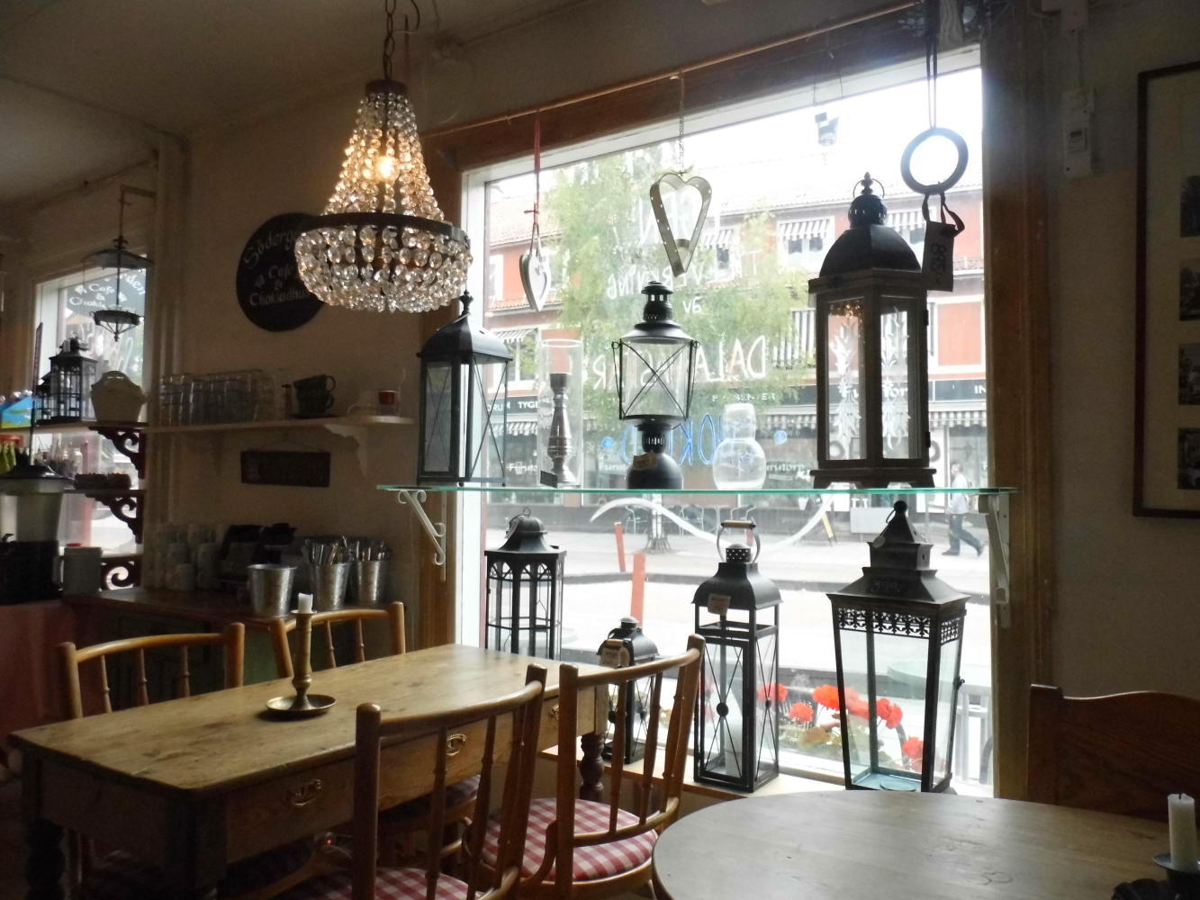 I paid for a coffee and went over and filled a cup and coloured it with milk, then took a seat. There were two other customers, two women much the age of myself chatting sing-song Swedish, every phrase ending with a sustained emphasises. Though what was most striking was the furniture, well made and aesthetically pleasing, and also, all the lanterns and artefact on shelves.